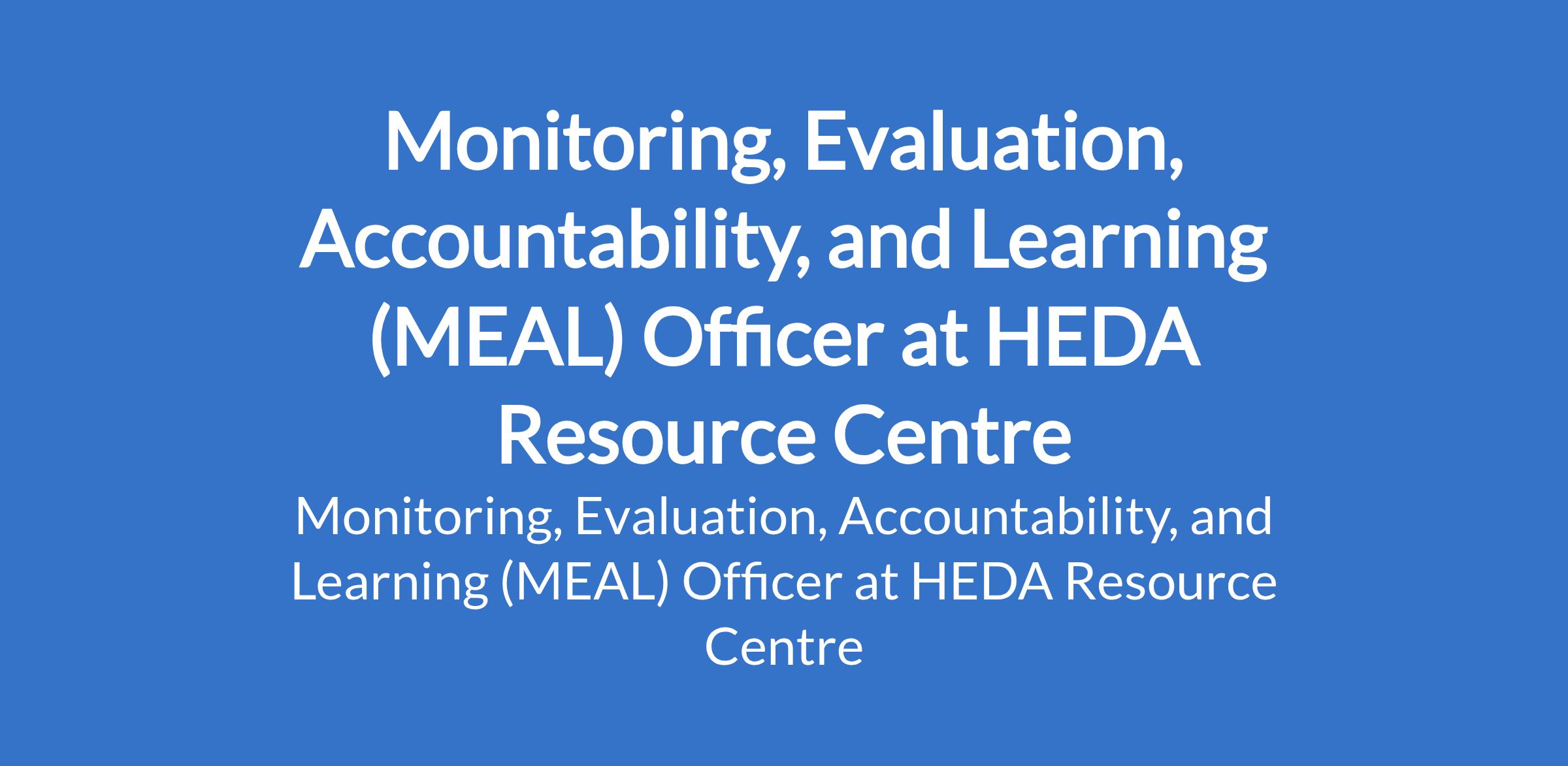 HEDA Resource Centre is recruiting to fill the position of: Monitoring, Evaluation, Accountability, and Learning (MEAL) Officer. The position is located in Ikeja, Lagos State. Interested candidates should possess a Bachelor's Degree in Statistics, Social Sciences, Development Studies, Economics, or a related field (Master's degree is an advantage) with 3-5 years' experience in monitoring and evaluation, preferably within an NGO or development organisation. Strong knowledge of M&E methodologies and tools.