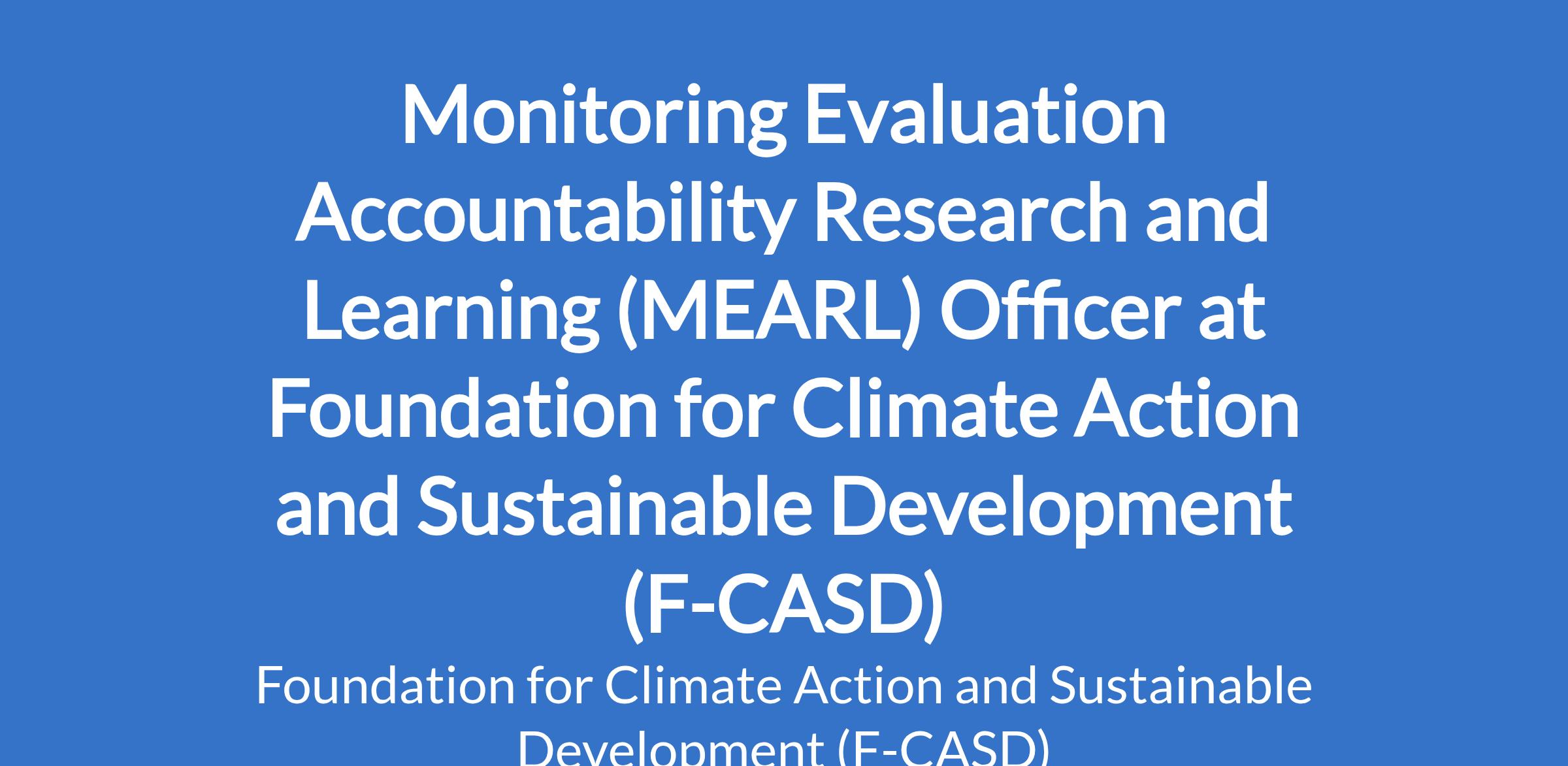 The Monitoring, Evaluation, Accountability, Research and Learning (MEARL) Officer will be responsible for designing and implementing systems to track, assess, and improve the impact of F-CASD's programs. This role ensures that projects are evidence-driven, accountable to stakeholders, and continuously learning to enhance climate action and sustainable development outcomes. The position requires strong analytical skills, attention to detail, and the ability to translate data into actionable insights.