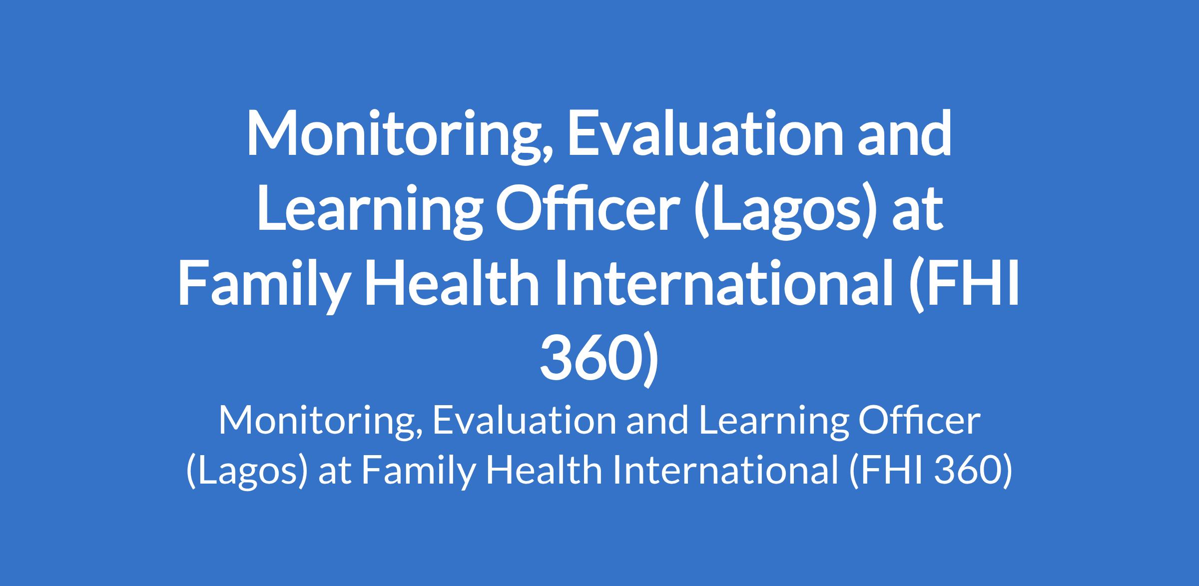 Family Health International (FHI 360) is recruiting to fill the position of: Monitoring, Evaluation and Learning Officer. The position is located in Lagos State. Interested candidates should possess a Bachelor's Degree or its International Equivalent in Data Science, Monitoring and Evaluation, Public Health, Epidemiology, Biostatistics, Health, Behavioural, Life/Social Sciences, International Development, Human Development, or a related field with 4+ years of relevant experience in monitoring, evaluation, and learning, including managing data collection, analysis, and reporting at the program or project level and prior work experience in a non-governmental organization (NGO), government agency, or international organization preferred.