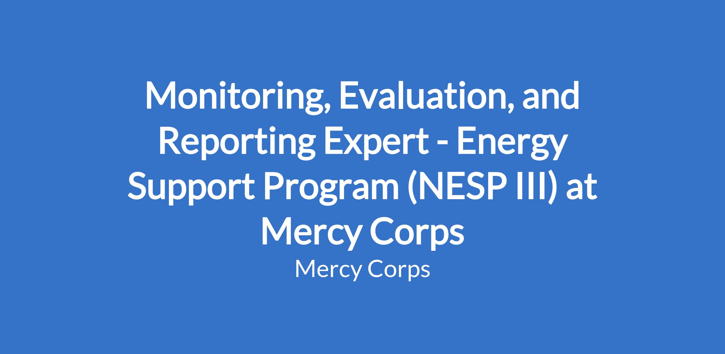 Monitoring, Evaluation, and Reporting Expert - Energy Support Program (NESP III) at Mercy Corps