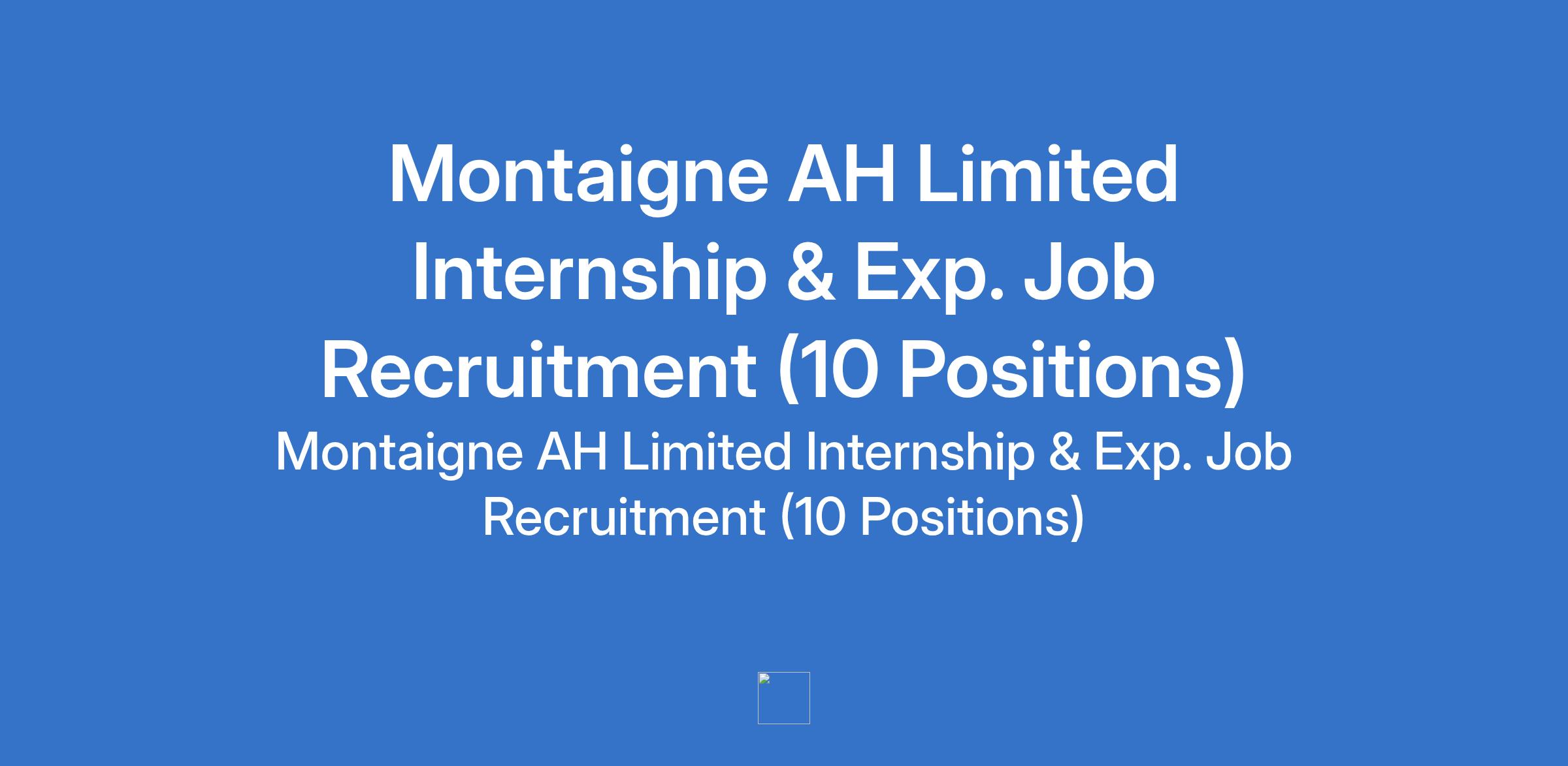 Montaigne AH Limited is recruiting suitable candidates to fill the following internship and experienced positions in Abuja and Lagos State: Head, Innovation and eCommerce, Sales Executive, Outlet Manager, Inventory Assistant, Account Intern, Learning and Development Manager, Brand Manager, Mark-up Artist, and Internal Auditor (Male).
