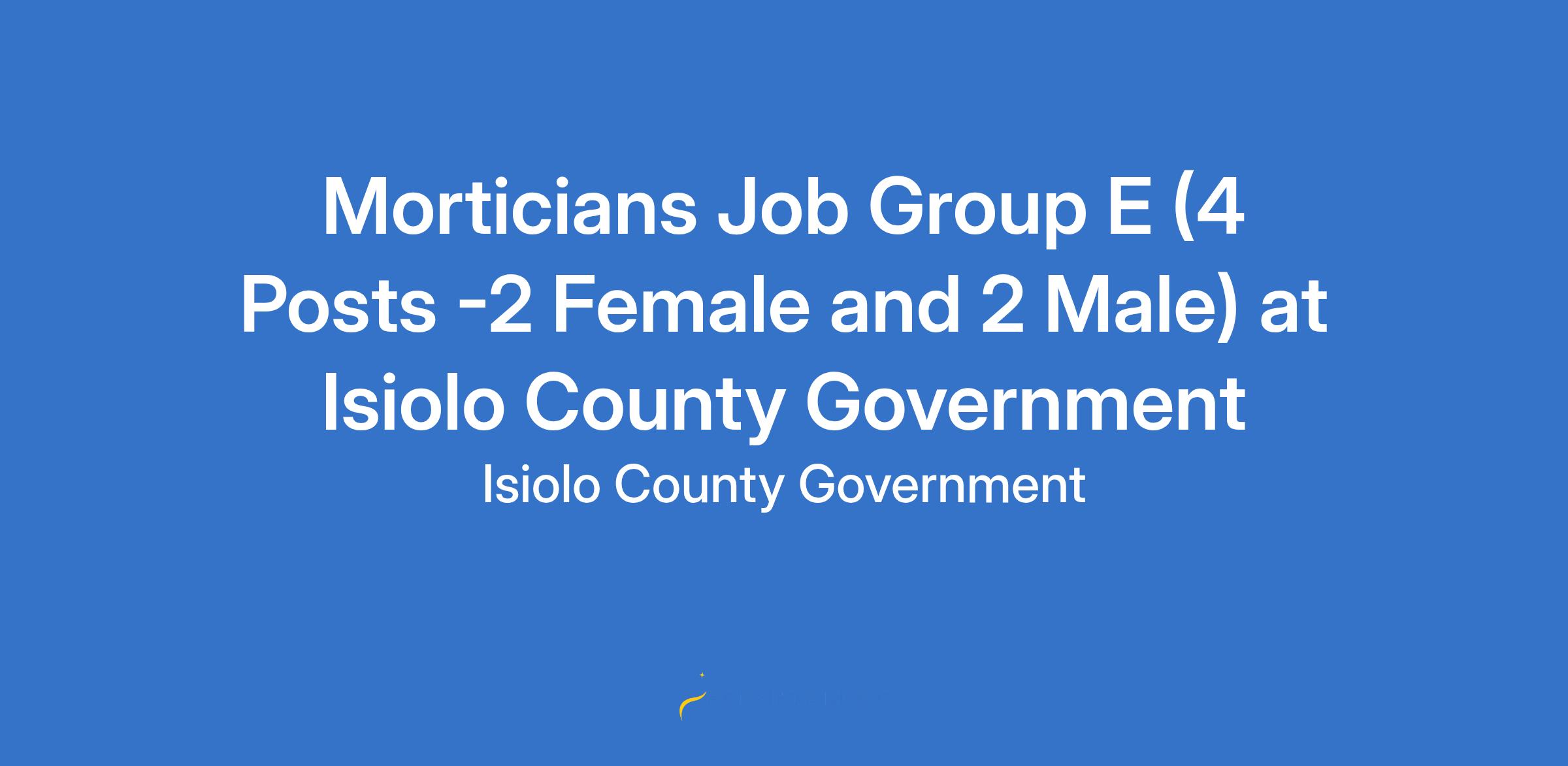 For appointment to this grade, a candidate must have: KCSE mean grade D (plain). Training in embalming will be an added advantage. Minimum experience of 1 (one) year will be an added advantage