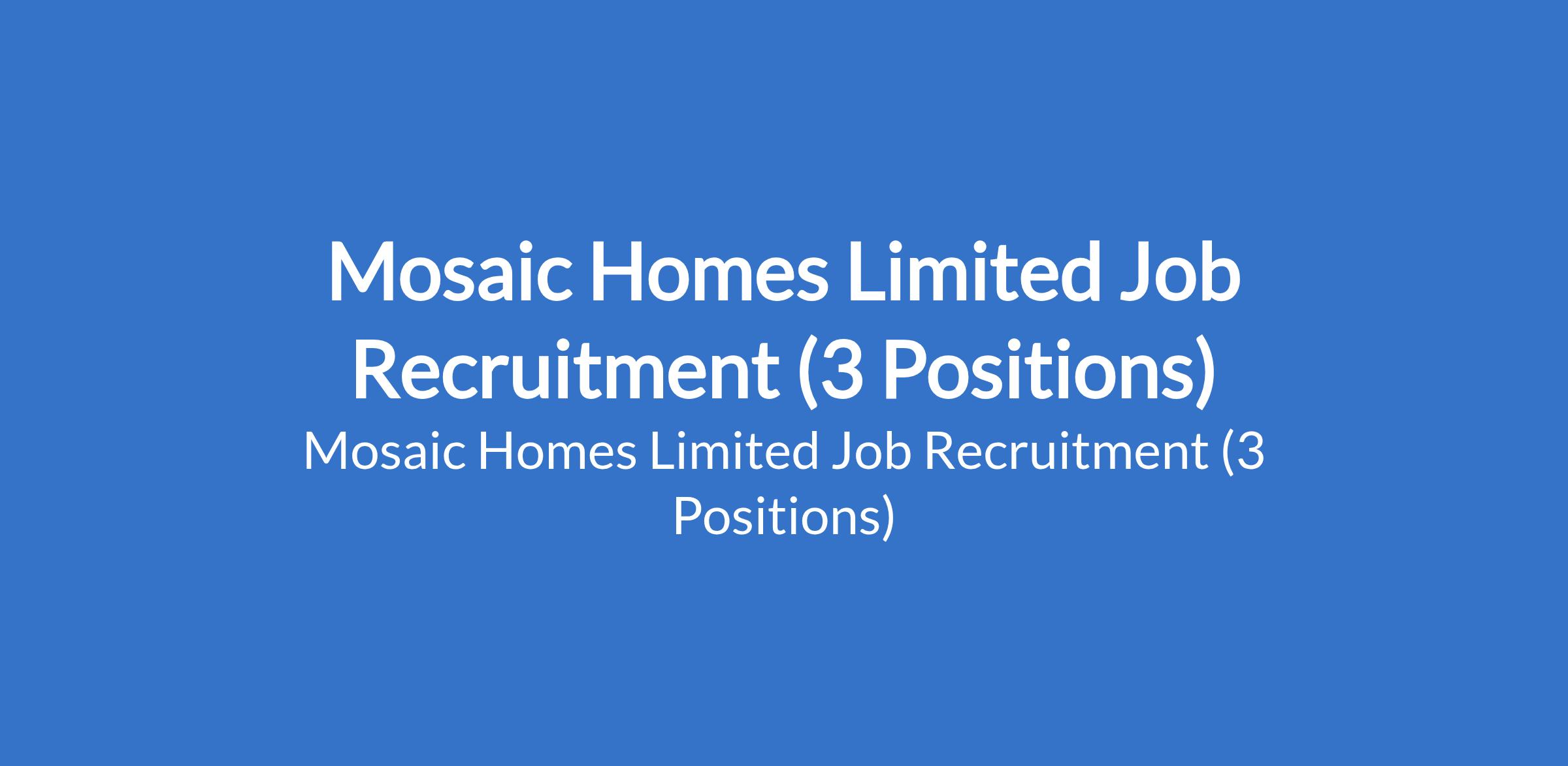 Mosaic Homes Limited Job Recruitment (3 Positions)