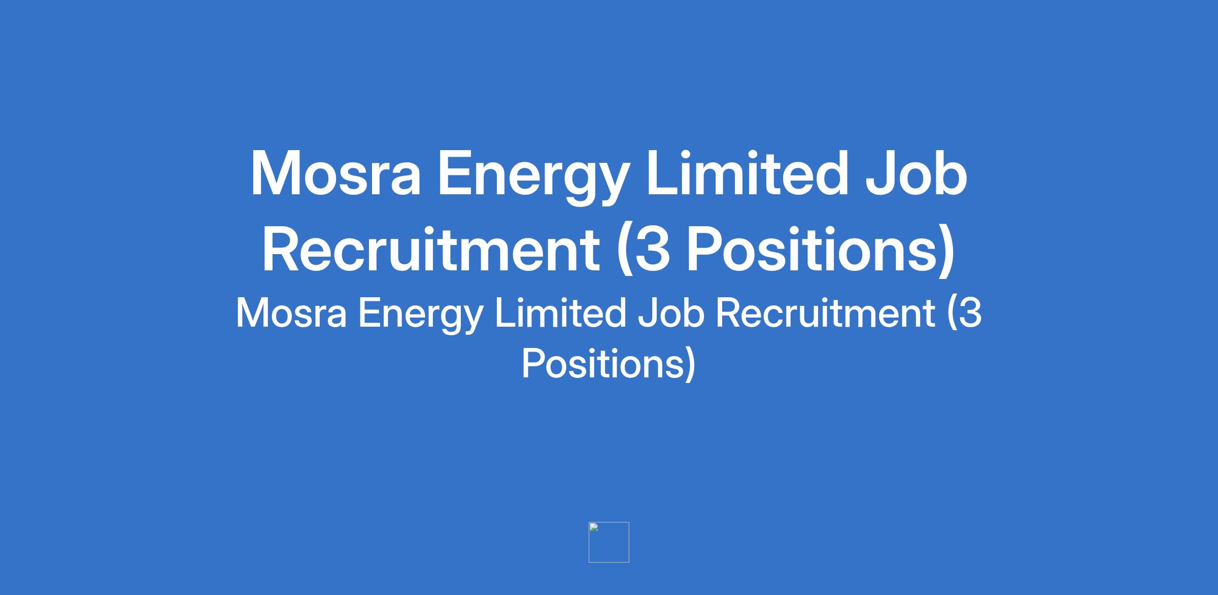 Mosra Energy Limited Job Recruitment (3 Positions)