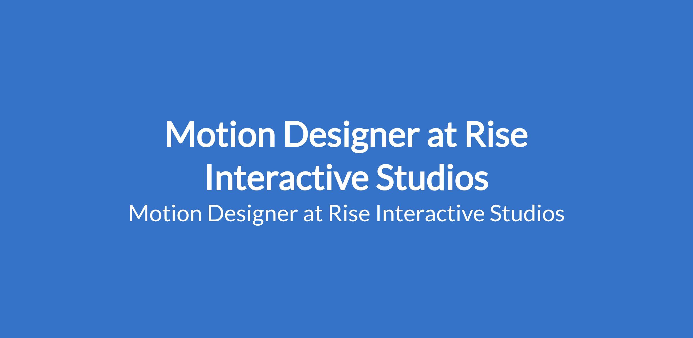 Motion Designer at Rise Interactive Studios