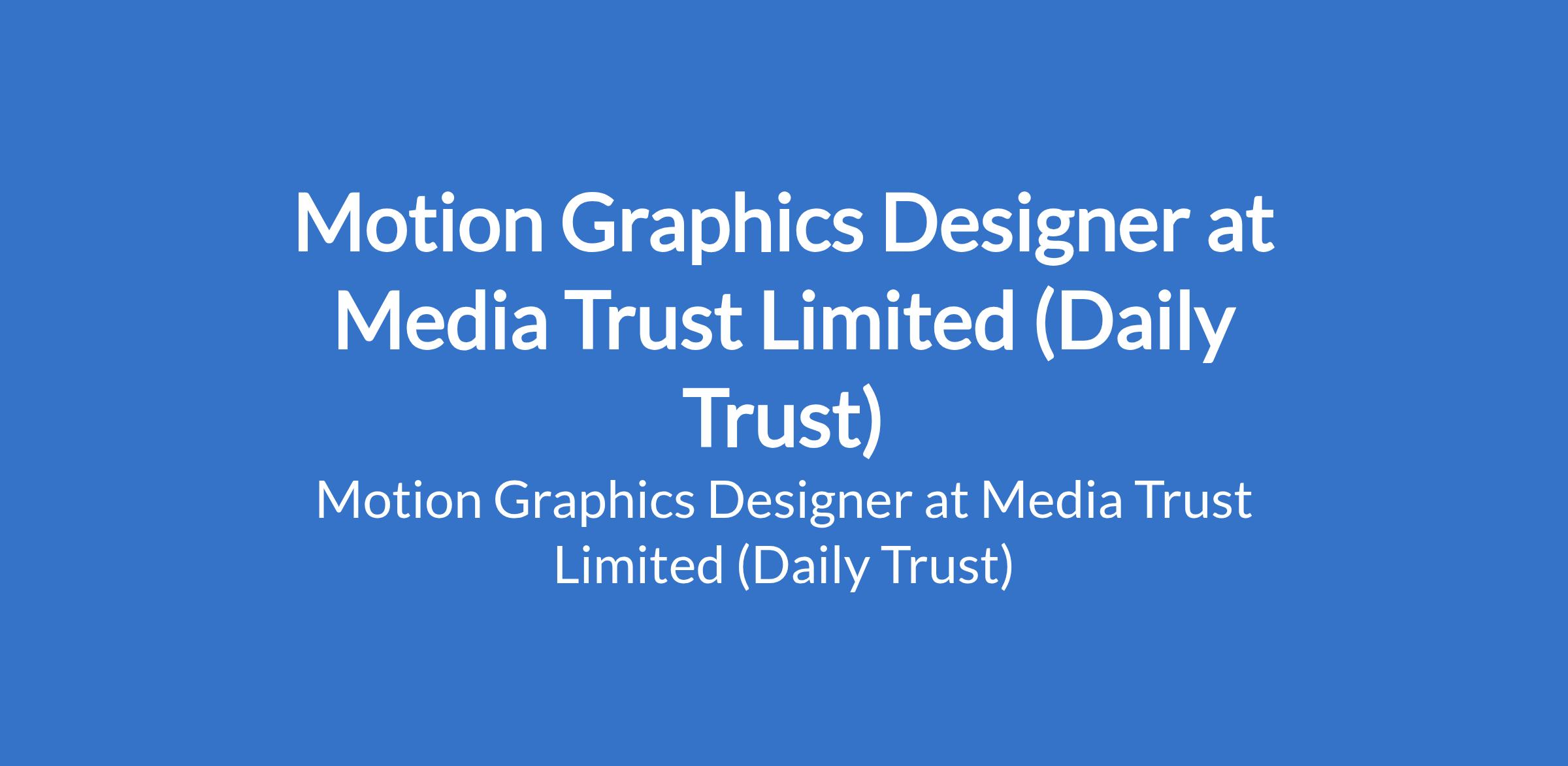 Media Trust Limited (Daily Trust) is recruiting to fill the position of: Motion Graphics Designer. The position is located in Abuja. Interested candidates should possess a Degree in Fine Arts, Graphic Design, or a related field (or equivalent professional experience) with a minimum of 3 years in a similar role.