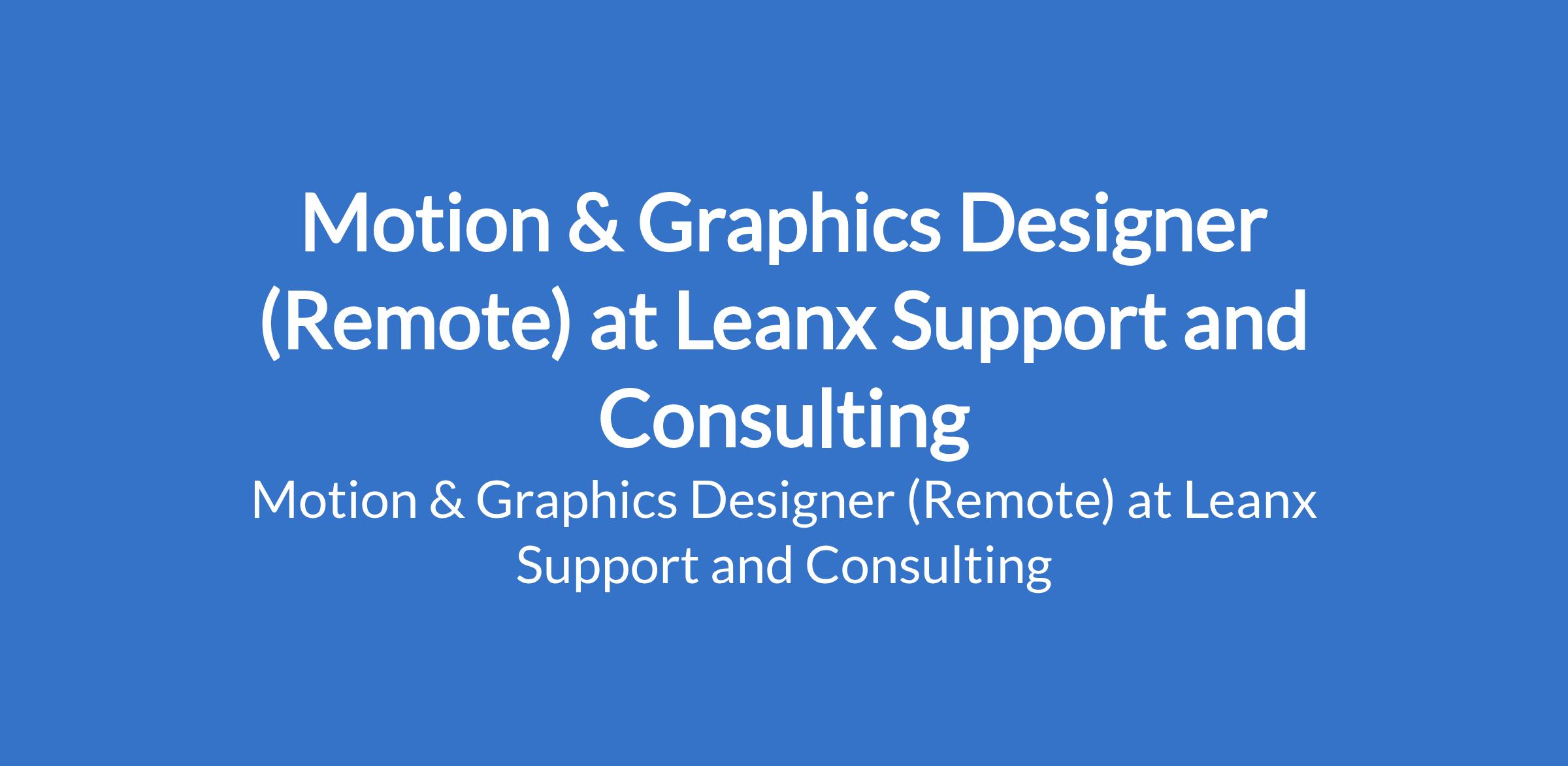 Leanx Support and Consulting is recruiting to fill the position of: Motion & Graphics Designer. This is a Remote position. Interested candidates should possess relevant qualifications with 12 years of experience in graphics design and/or motion design.