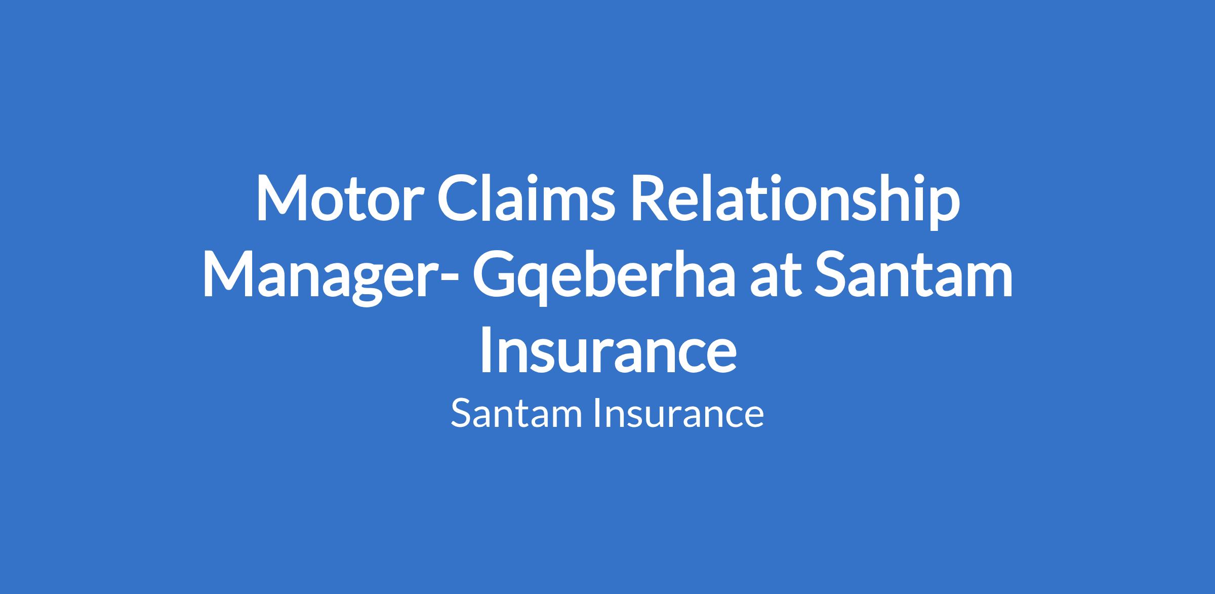 Motor Claims Relationship Manager- Gqeberha at Santam Insurance