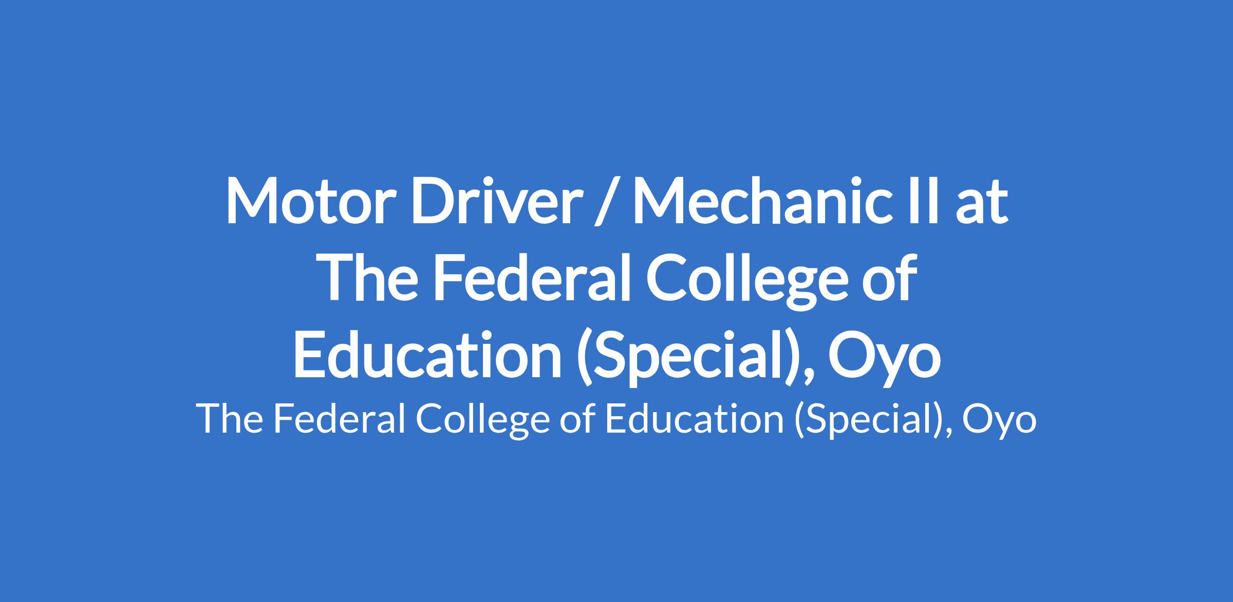 Motor Driver / Mechanic II at The Federal College of Education (Special), Oyo