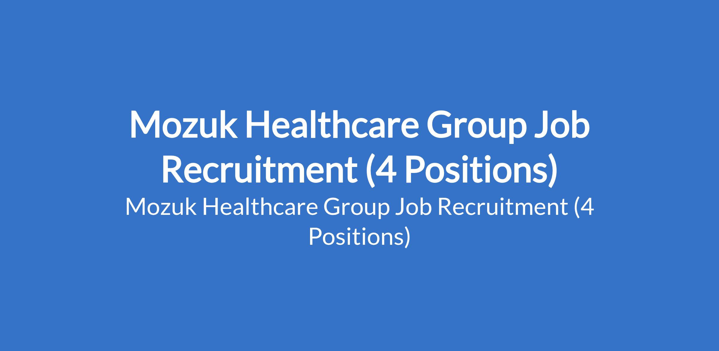 Mozuk Healthcare Group Job Recruitment (4 Positions)
