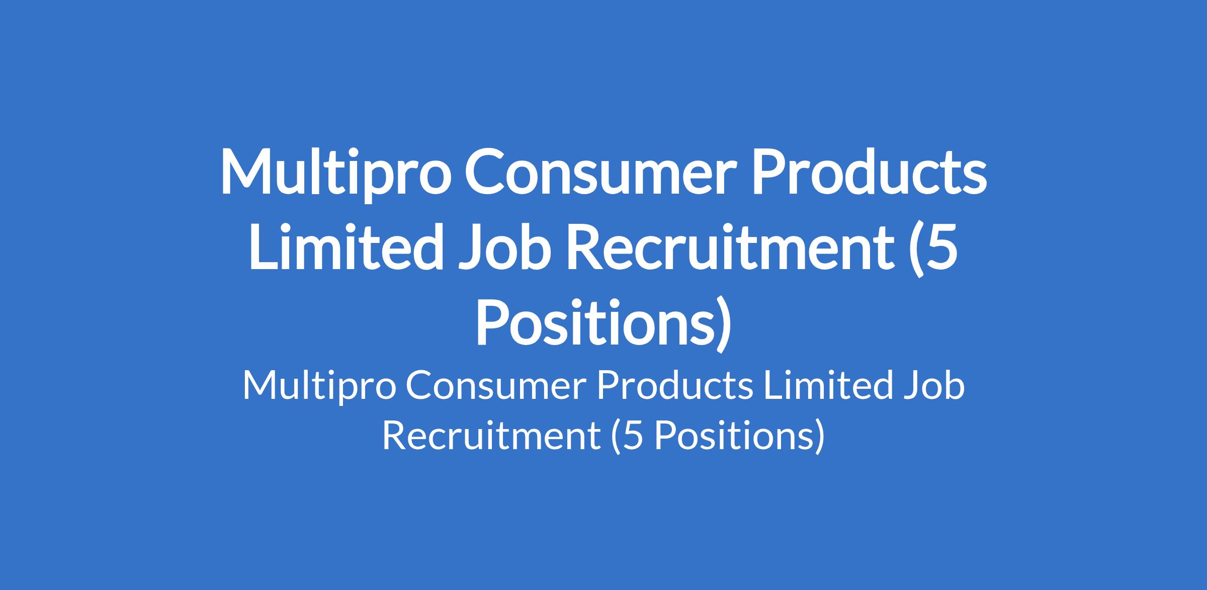 Multipro Consumer Products Limited Job Recruitment (5 Positions)