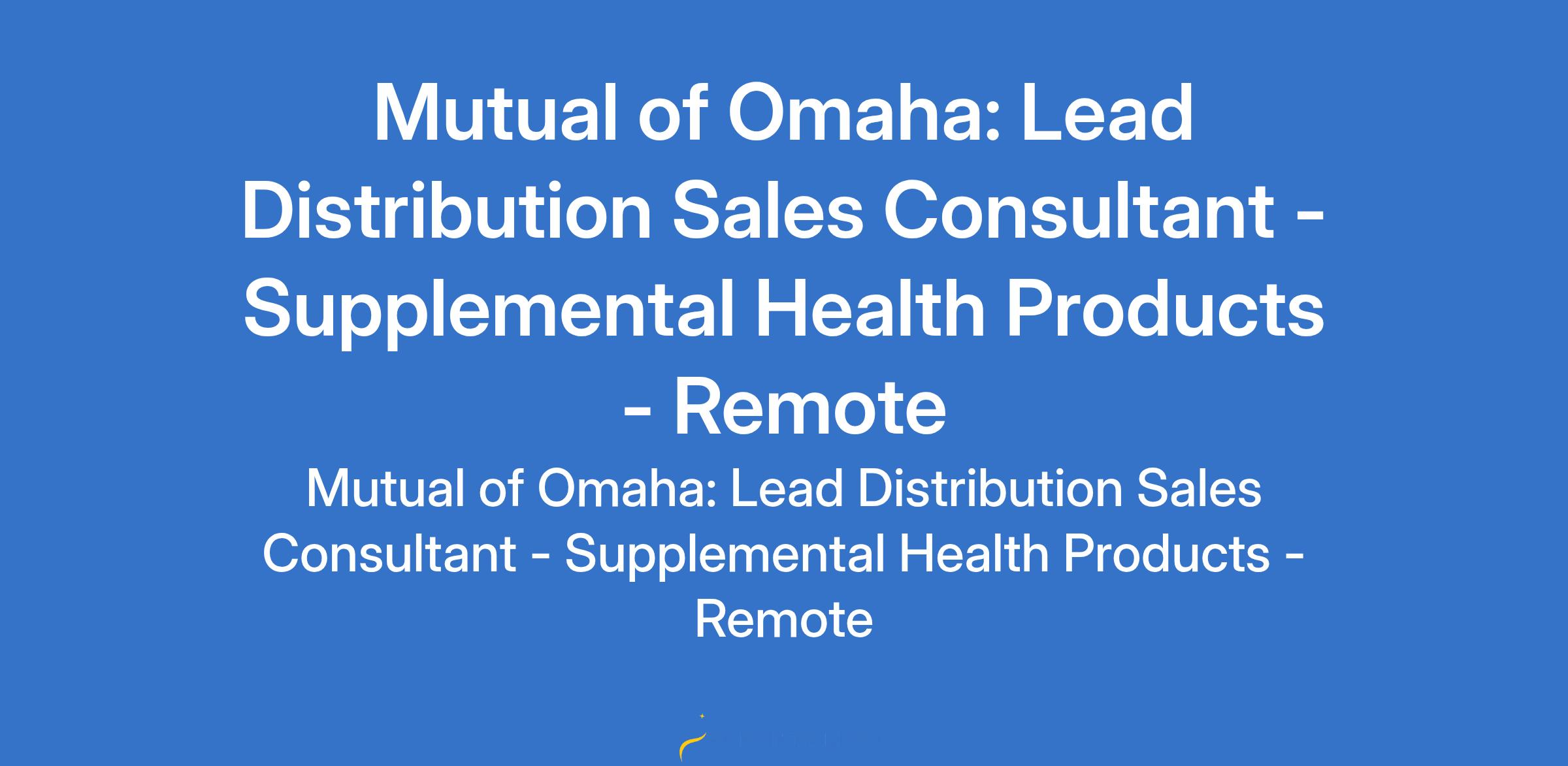 To apply: https://weworkremotely.com/remote-jobs/mutual-of-omaha-lead-distribution-sales-consultant-supplemental-health-products-remote-2