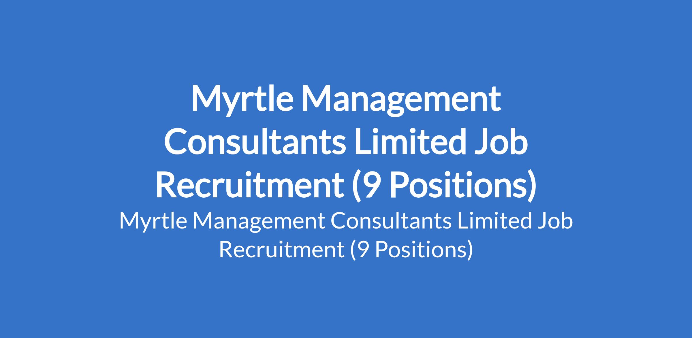 Myrtle Management Consultants Limited is recruiting suitable candidates to fill the following positions in Lagos, Delta or Rivers, and Edo States: Civil Engineer (Site / Project Focus), Administrative Manager, Operations and Sales Coordinator, Finance Officer, Head of School, Supply Chain Manager, Finance and Account Manager, and Freelance Sales Officer.