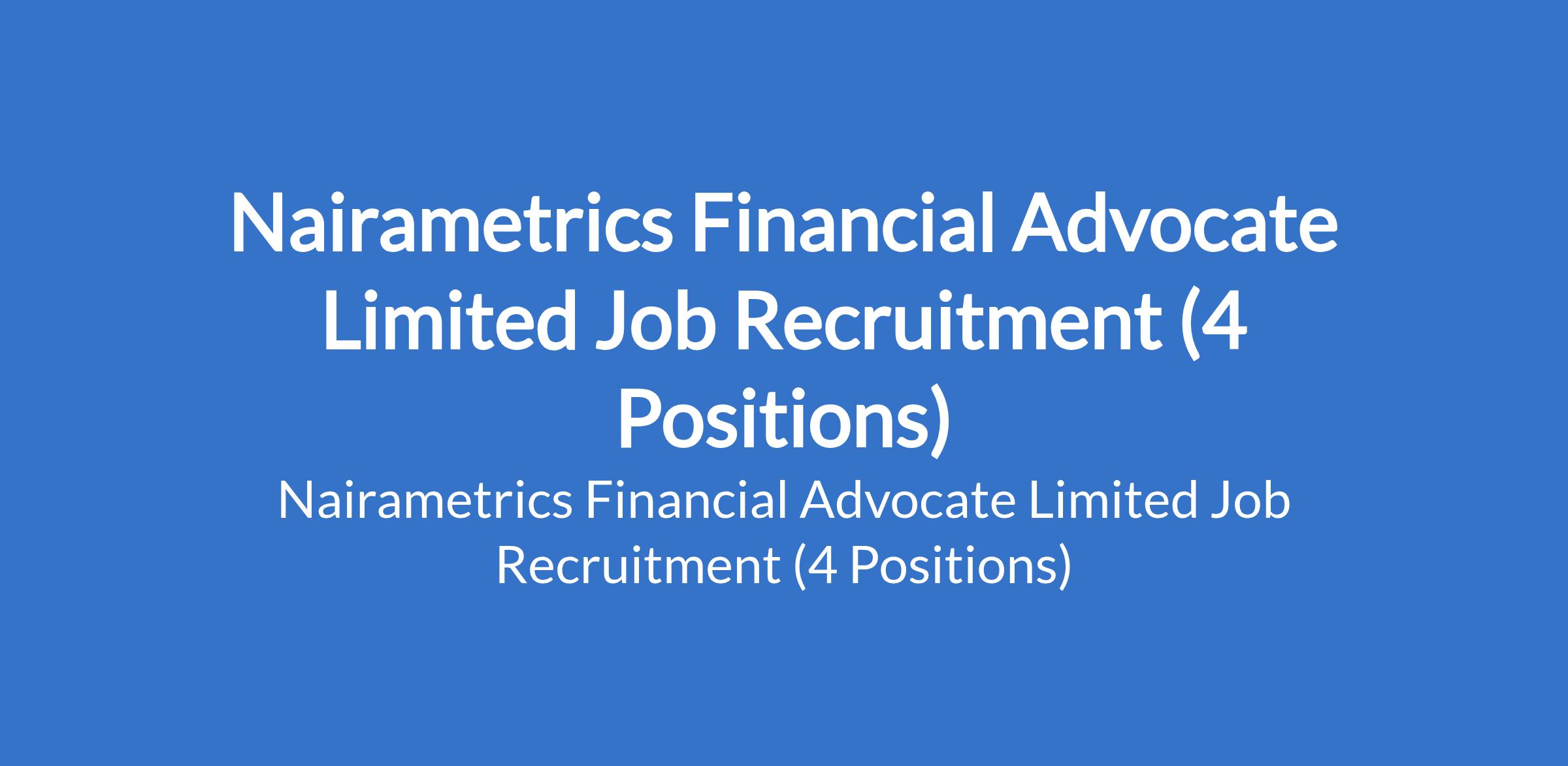 Nairametrics Financial Advocate Limited Job Recruitment (4 Positions)