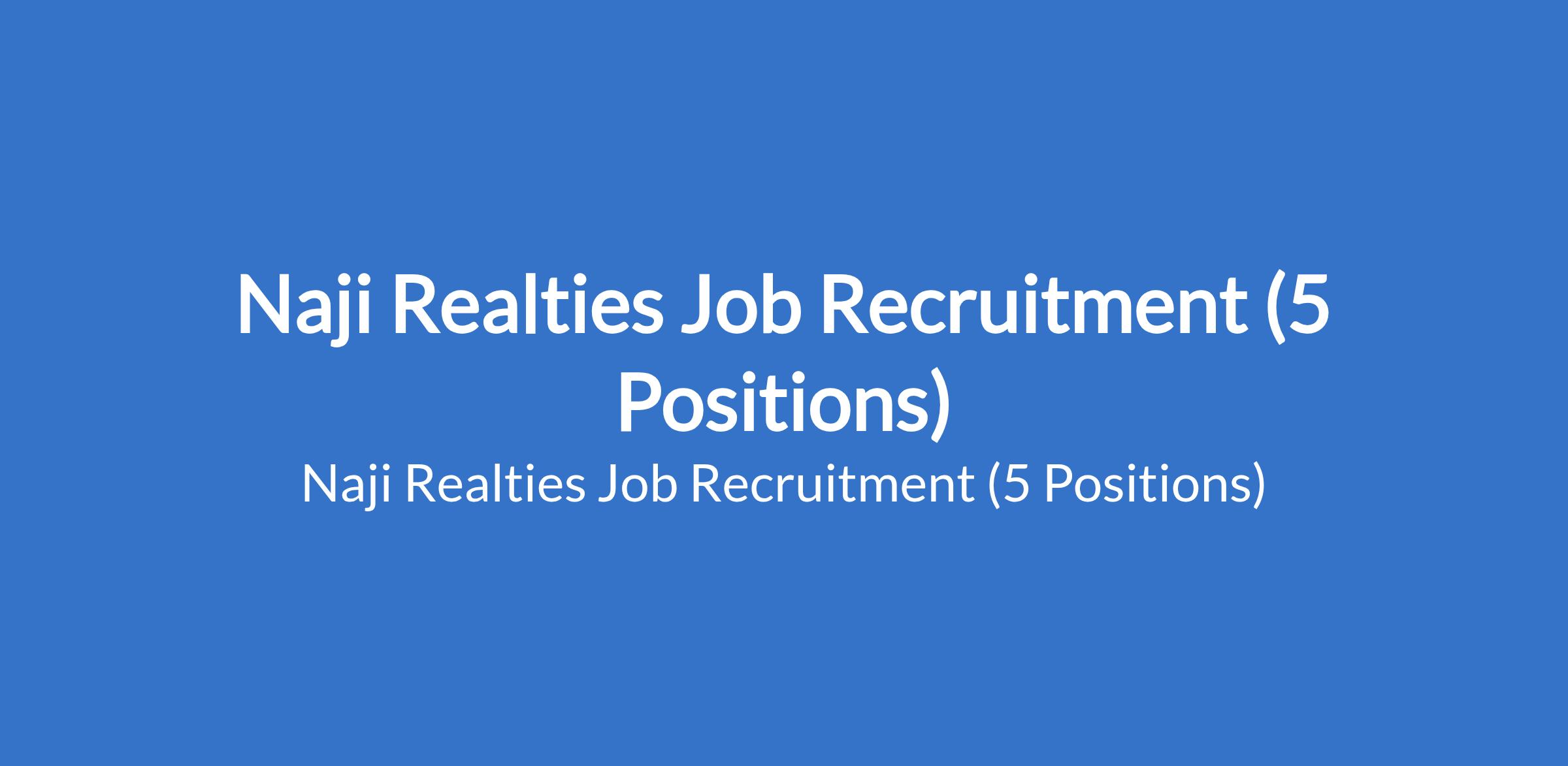 Naji Realties Job Recruitment (5 Positions)
