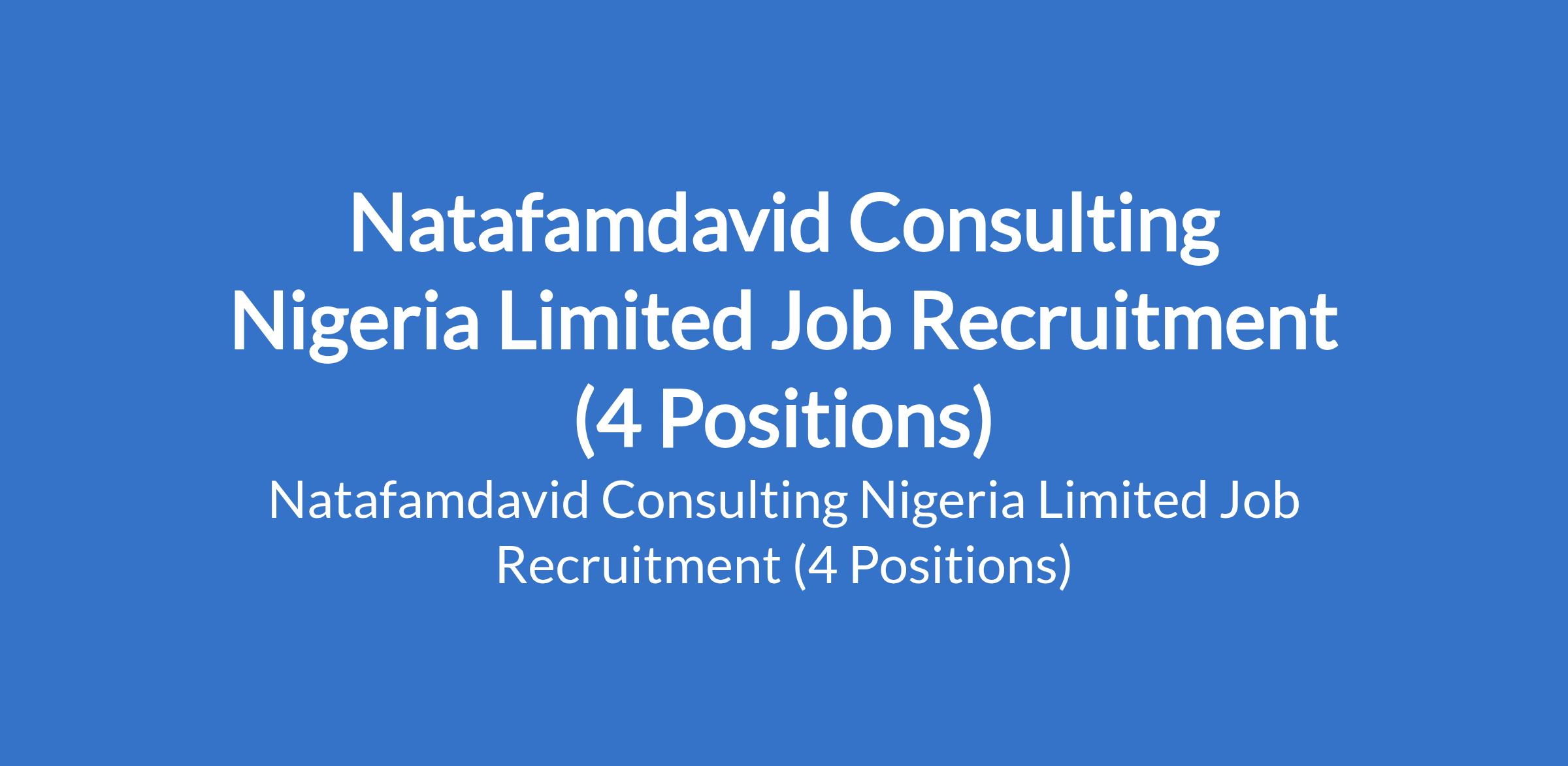 Natafamdavid Consulting Nigeria Limited Job Recruitment (4 Positions)