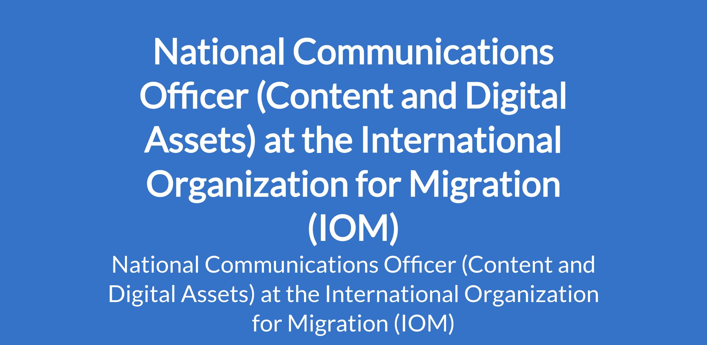 The International Organization for Migration (IOM) is recruiting to fill the position of: National Communications Officer (Content and Digital Assets). The position is located in Abuja. Interested candidates should possess a University Degree in Communications, Media Studies, Journalism, Film, Digital Media, or a related field with a minimum of two years of professional experience in content production, multimedia storytelling, or digital communications.