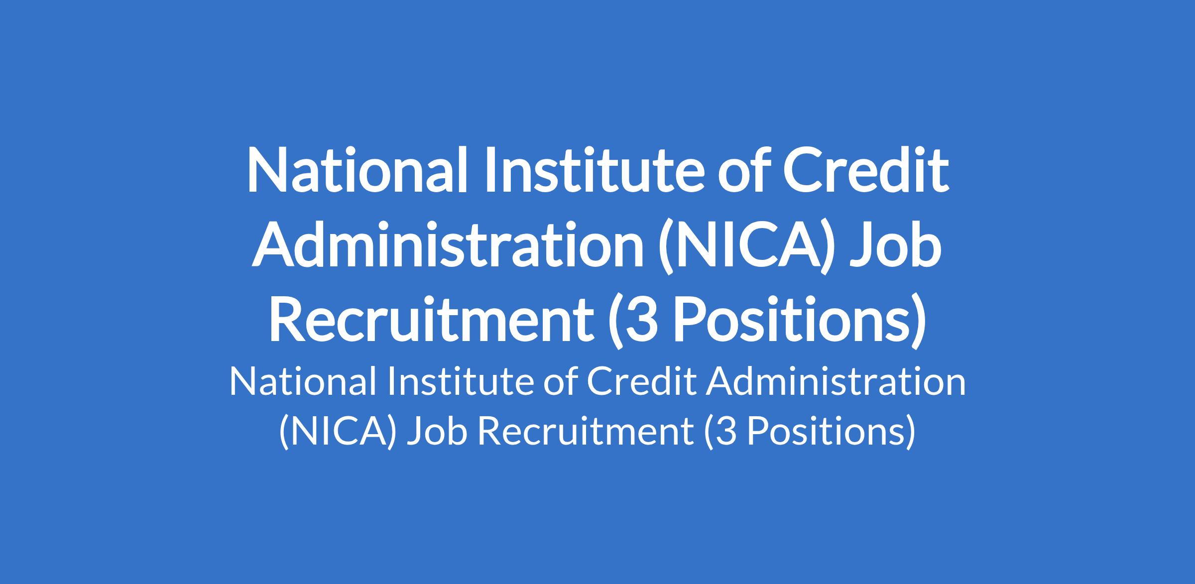 National Institute of Credit Administration (NICA) Job Recruitment (3 Positions)