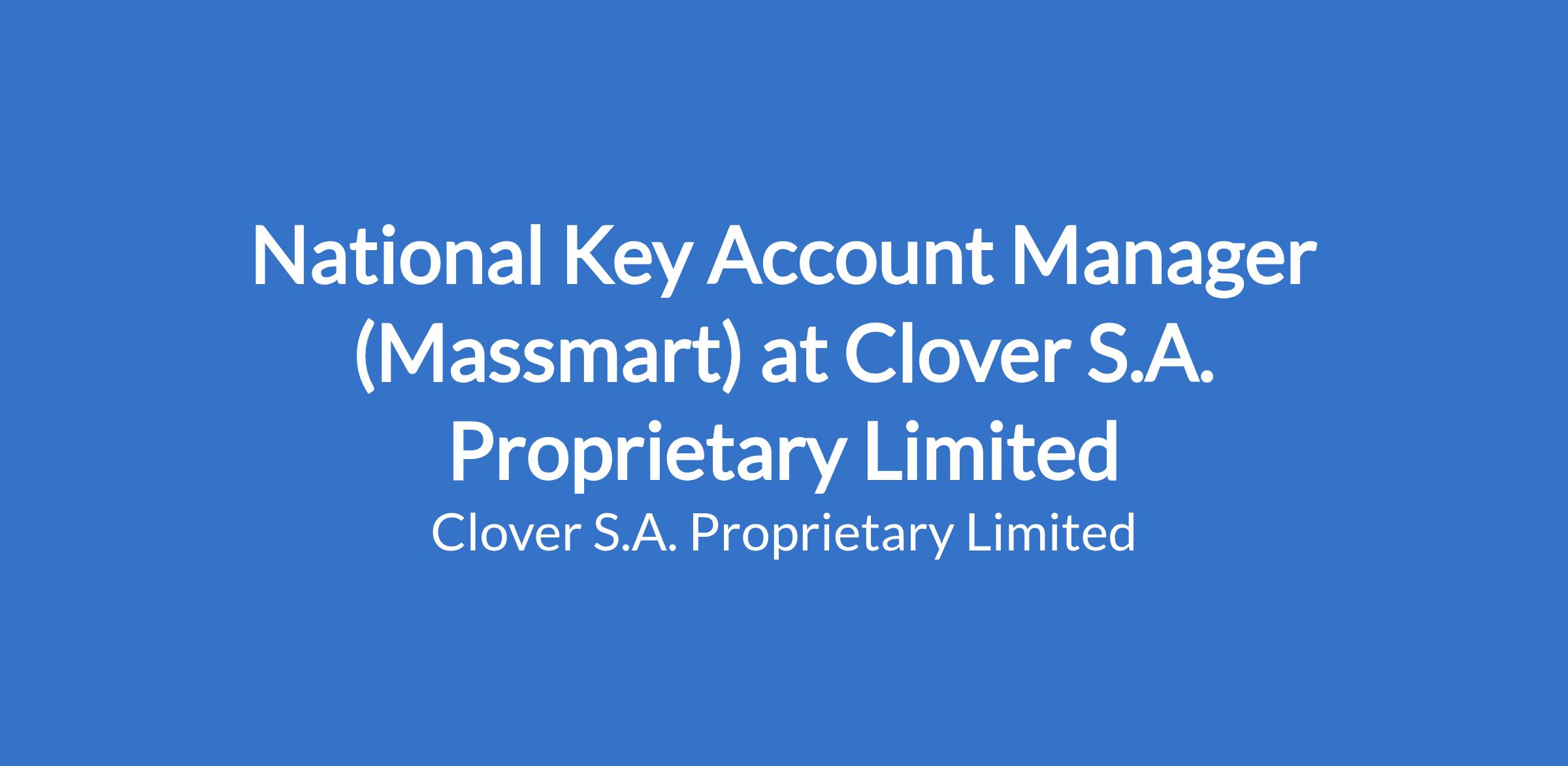 Clover is looking for a results-driven and highly motivated National Key Account Manager to join our Key Account team. The ideal candidate must have a strong background in sales, a proven track record of exceeding sales targets, and a passion for driving business growth through acquiring new accounts and maintaining relationship with the key accounts. The successful will be responsible for management of key accounts for specific national account. This position is based at Clover's Head Office in Roodepoort (Gauteng).