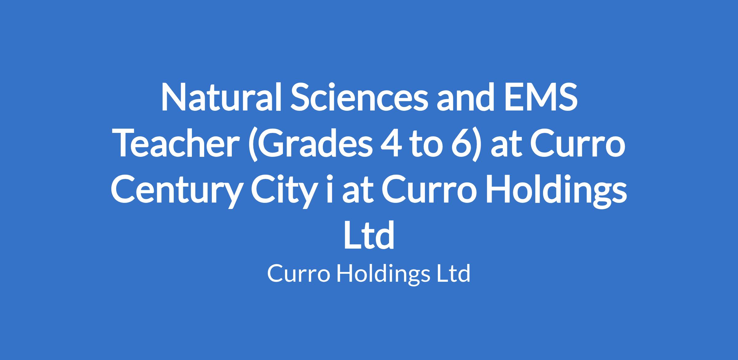 Natural Sciences and EMS Teacher (Grades 4 to 6) at Curro Century City i at Curro Holdings Ltd