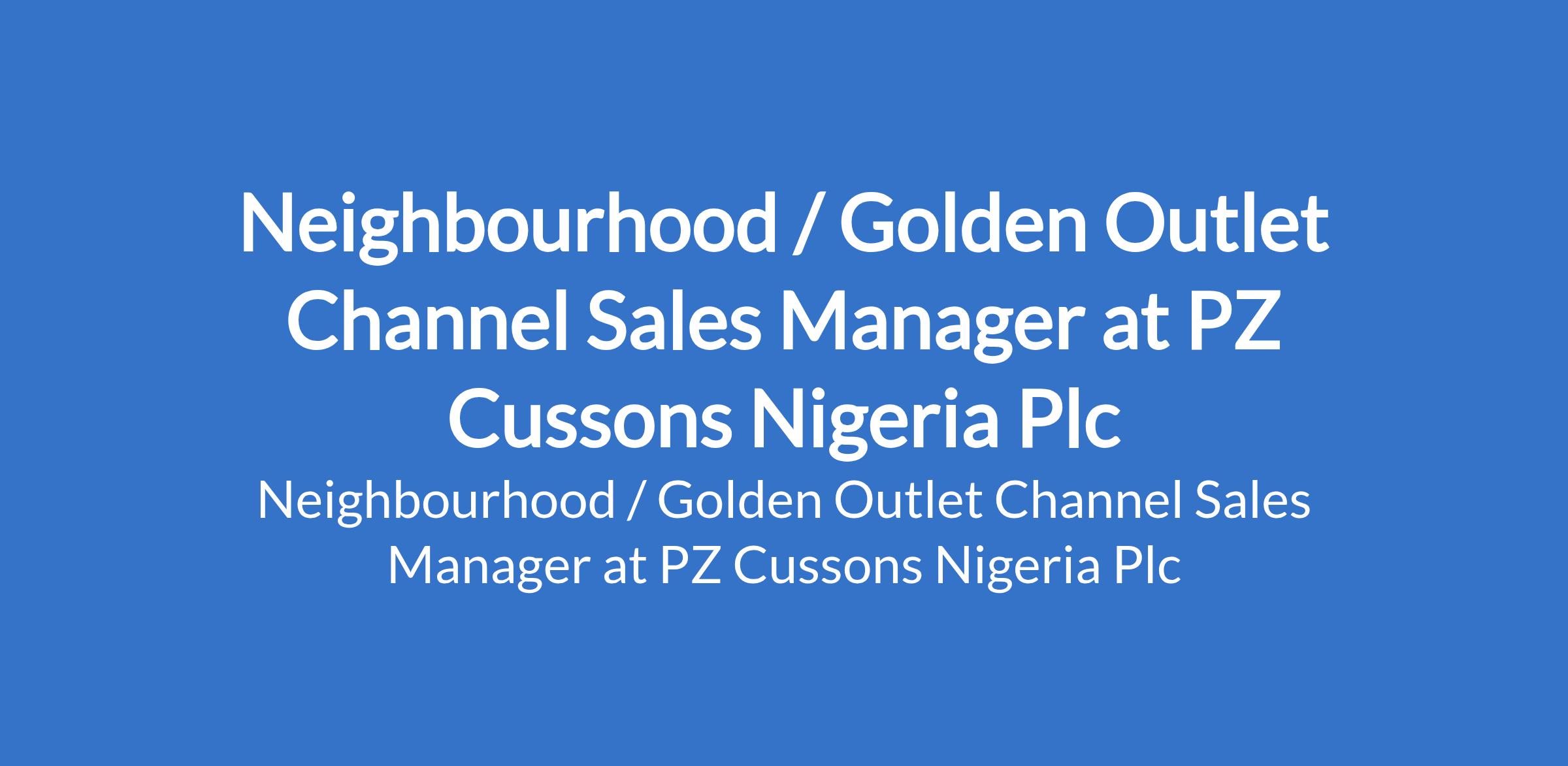 PZ Cussons Nigeria Plc is recruiting to fill the position of: Neighbourhood / Golden Outlet Channel Sales Manager. The position is located in Lagos State. Interested candidates should possess a First Degree in any discipline with a minimum of 1 year experience in marketing or sales, and over this period has successfully delivered on KPIs.