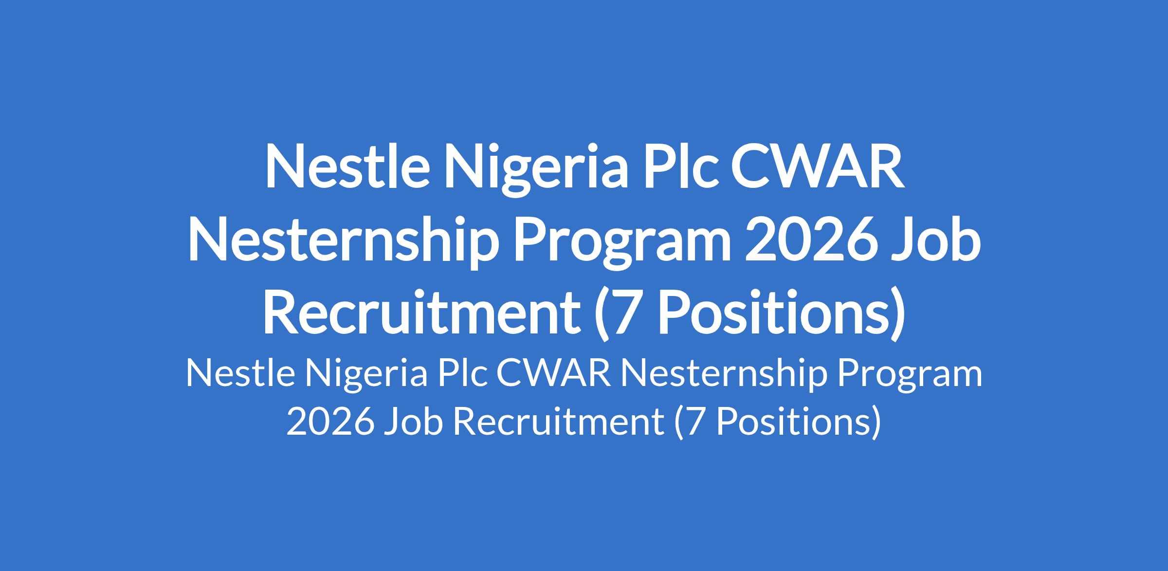 Nestle Nigeria Plc CWAR Nesternship Program 2026 Job Recruitment (7 Positions)
