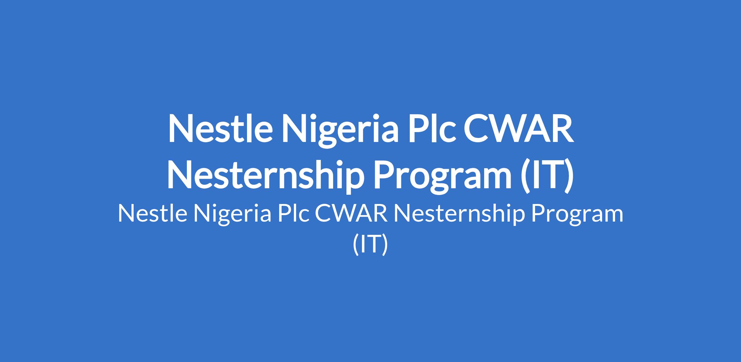 Nestle Nigeria Plc invites applications from suitable candidates for its 2026 CWAR Nesternship Program (IT). The program is designed for candidates who are ready to gain hands-on experience, work on real business projects, and learn from professionals across Nestle. Interested candidates should possess relevant qualifications.