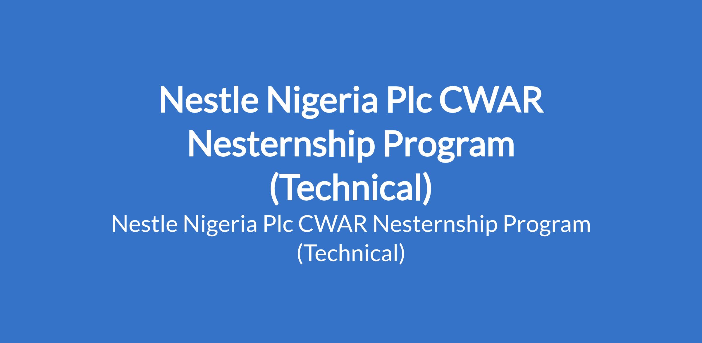 Nestle Nigeria Plc invites applications from suitable candidates for its 2026 CWAR Nesternship Program (Technical). The program is designed for candidates who are ready to gain hands-on experience, work on real business projects, and learn from professionals across Nestle. Interested candidates should possess relevant qualifications.