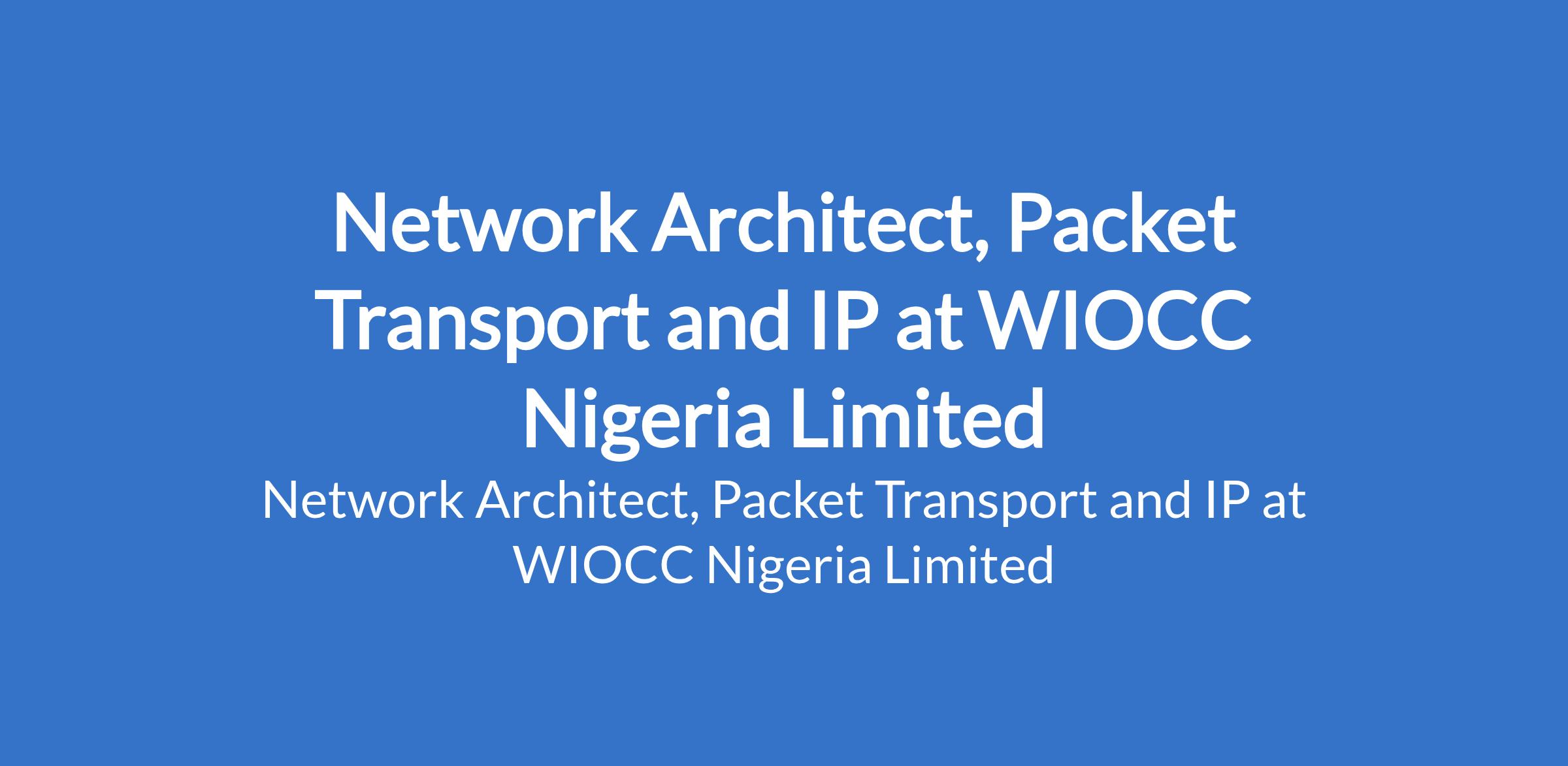 WIOCC Nigeria Limited is recruiting to fill the position of: Network Architect, Packet Transport and IP. The position is located in Lagos State. Interested candidates should possess a Bachelors Degree in Engineering, Computer Science or a related field.