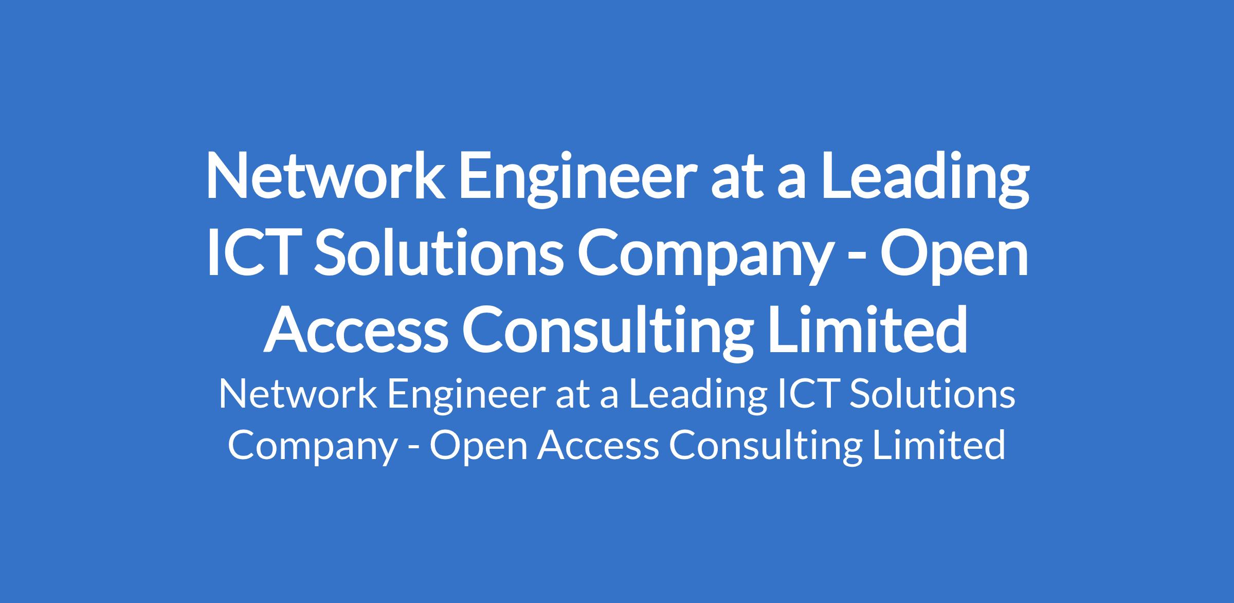 Open Access Consulting Limited - Our client, a leading company in the Internet Service Provider (ISP) and ICT solutions sector is recruiting to fill the position of: Network Engineer. The position is located in Lagos State. Interested candidates should possess a Bachelors Degree in Computer Science, Information Technology, Network Engineering, or related field with 2 years experience; Relevant certifications such as CCNA, CCNP, or equivalent are an advantage.