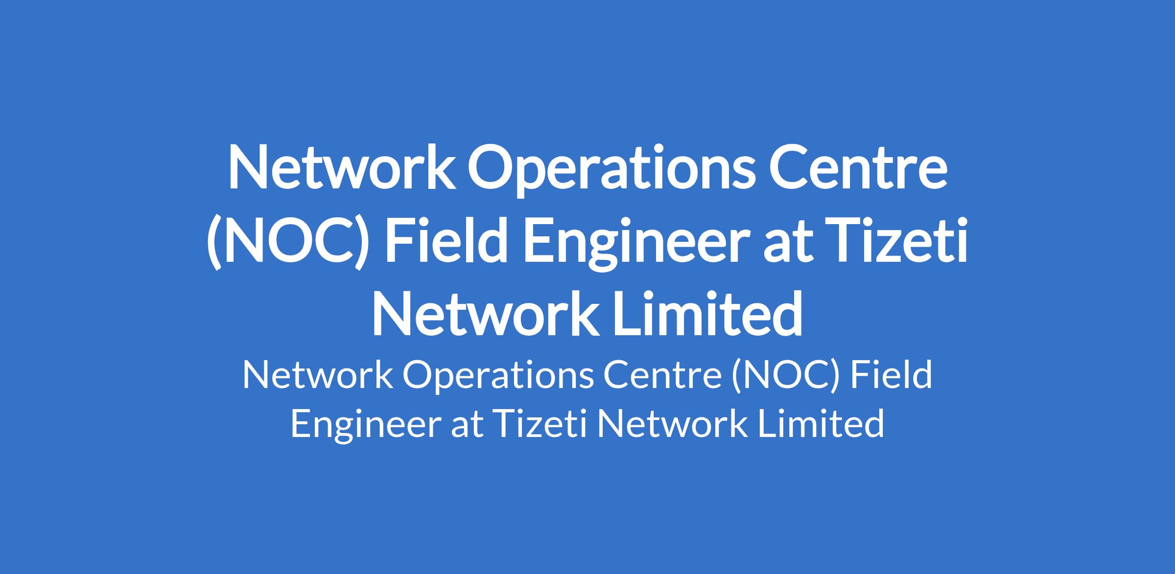 Tizeti Network Limited is recruiting to fill the position of: Network Operations Centre (NOC) Field Engineer. The position is located in Lekki, Lagos State. Salary: N150,000 - N180,000 / month. Interested candidates should possess a Bachelors Degree or HND in Engineering, Computer Science, Information Technology, or a related discipline.