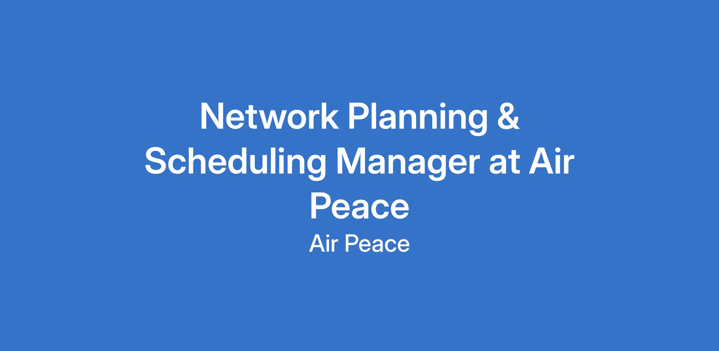 Network Planning & Scheduling Manager at Air Peace