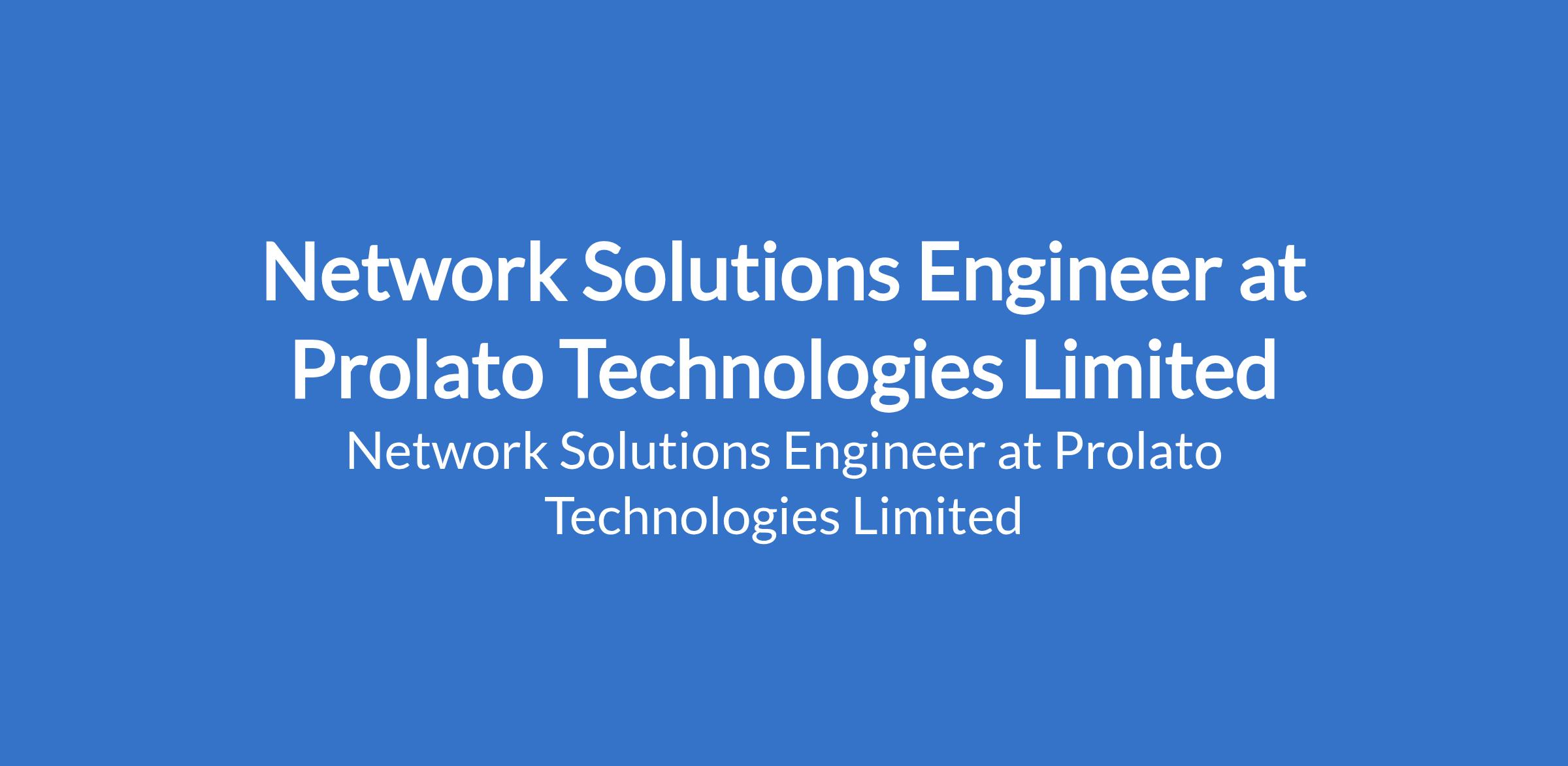 Prolato Technologies Limited is recruiting to fill the position of: Network Solutions Engineer. The position is located in Surulere, Lagos State. Salary: N200,000 - N250,000 per month. Interested candidates should possess a minimum academic qualification of Bachelors Degree in Computer Science or a technology-related field from a recognized University with1-3 years of experience in network engineering; hands-on experience with Cisco network devices such as switches, routers and access points a must.