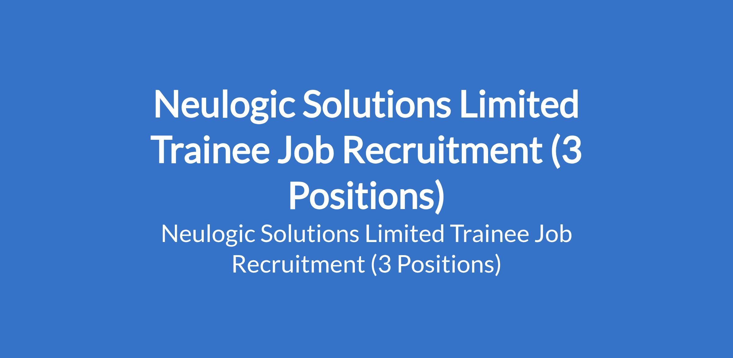 Neulogic Solutions Limited Trainee Job Recruitment (3 Positions)
