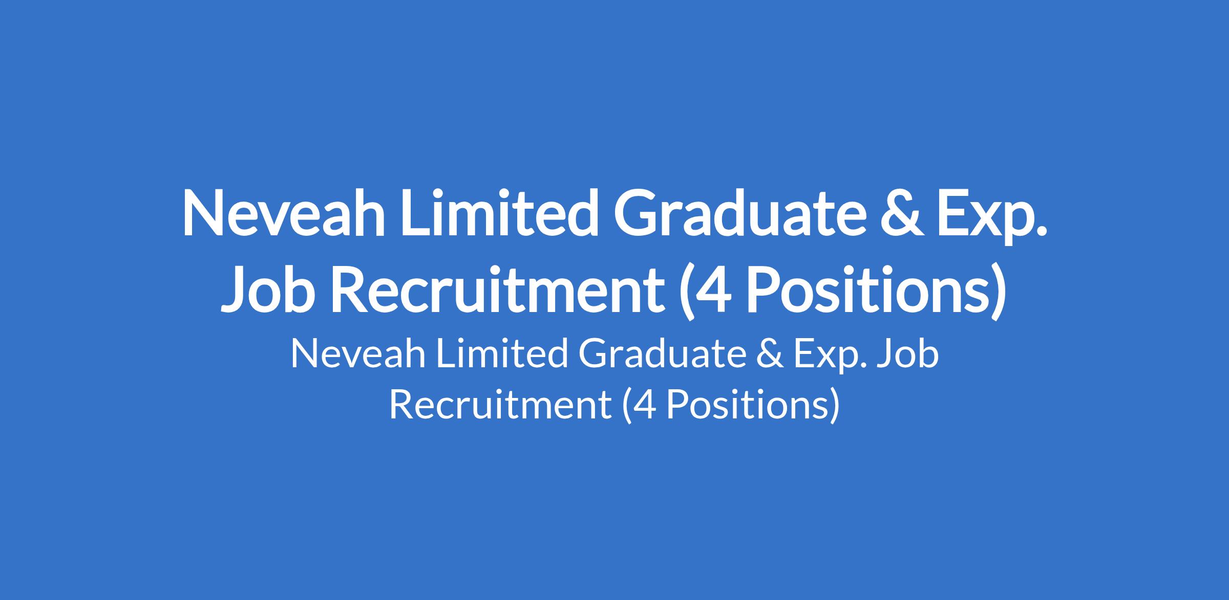 Neveah Limited Graduate & Exp. Job Recruitment (4 Positions)