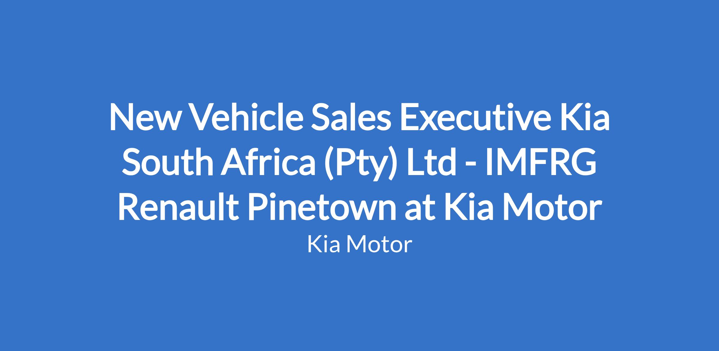 New Vehicle Sales Executive Kia South Africa (Pty) Ltd - IMFRG Renault Pinetown at Kia Motor