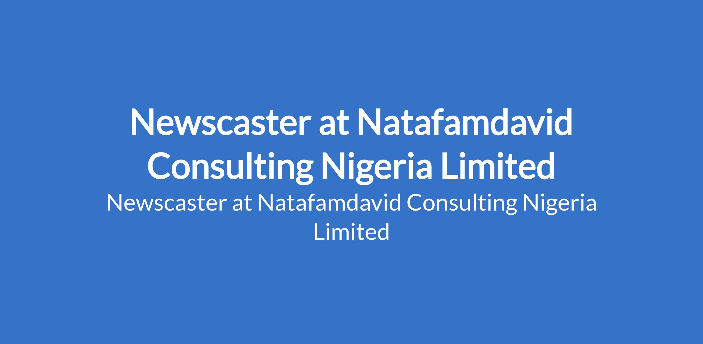 Natafamdavid Consulting Nigeria Limited is recruiting to fill the position of: Newscaster. The position is located in Ikeja, Lagos State. Interested candidates should possess an HND/BSc in Mass Communication, Journalism, English, or related field with 24 years experience in news broadcasting or journalism is an advantage.