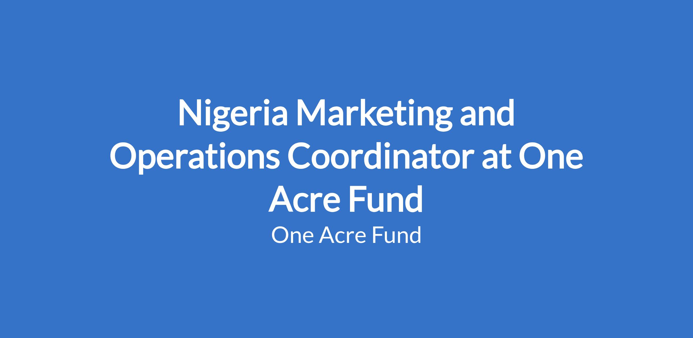 Nigeria Marketing and Operations Coordinator at One Acre Fund