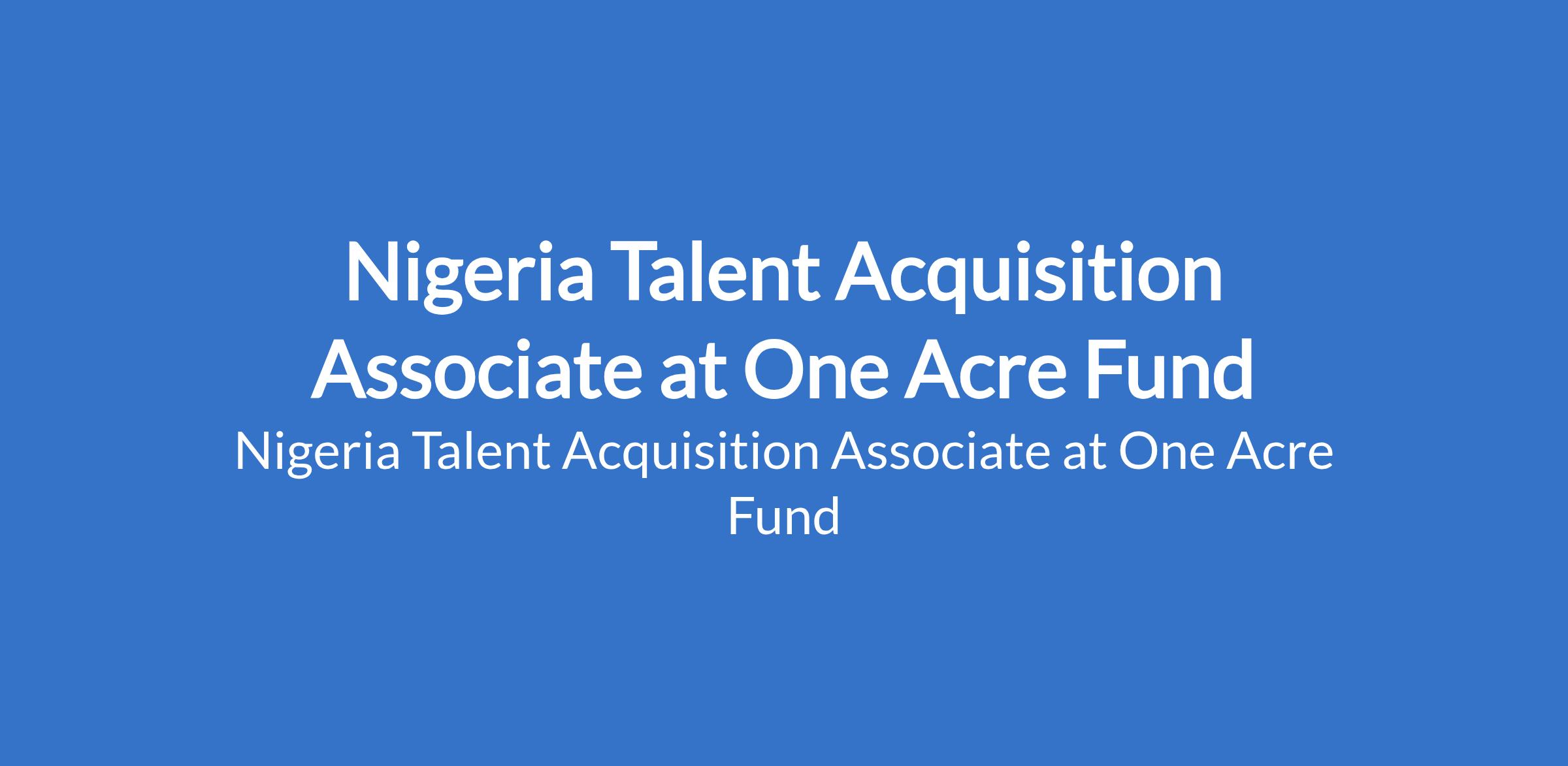 Nigeria Talent Acquisition Associate at One Acre Fund