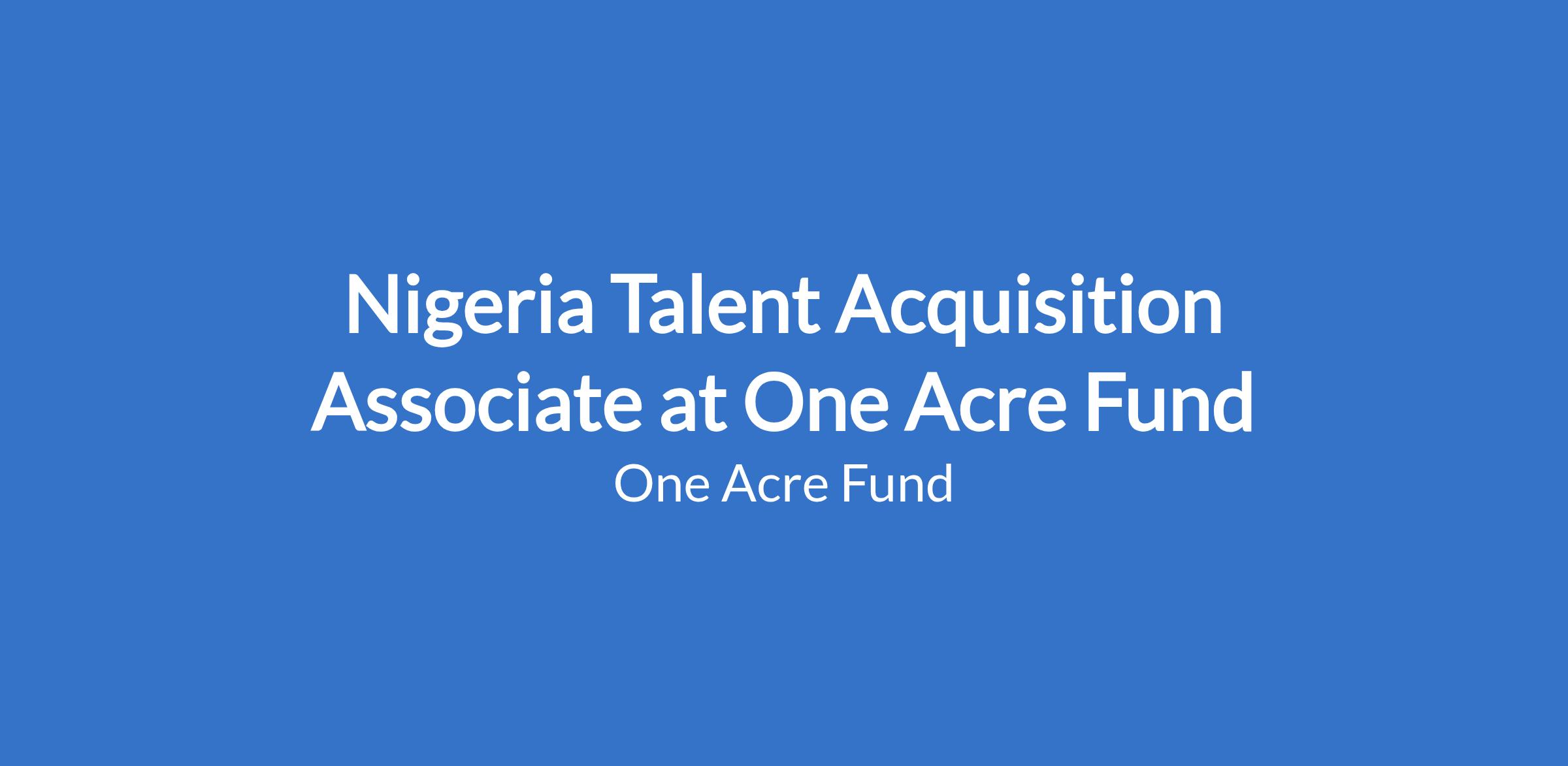 Nigeria Talent Acquisition Associate at One Acre Fund