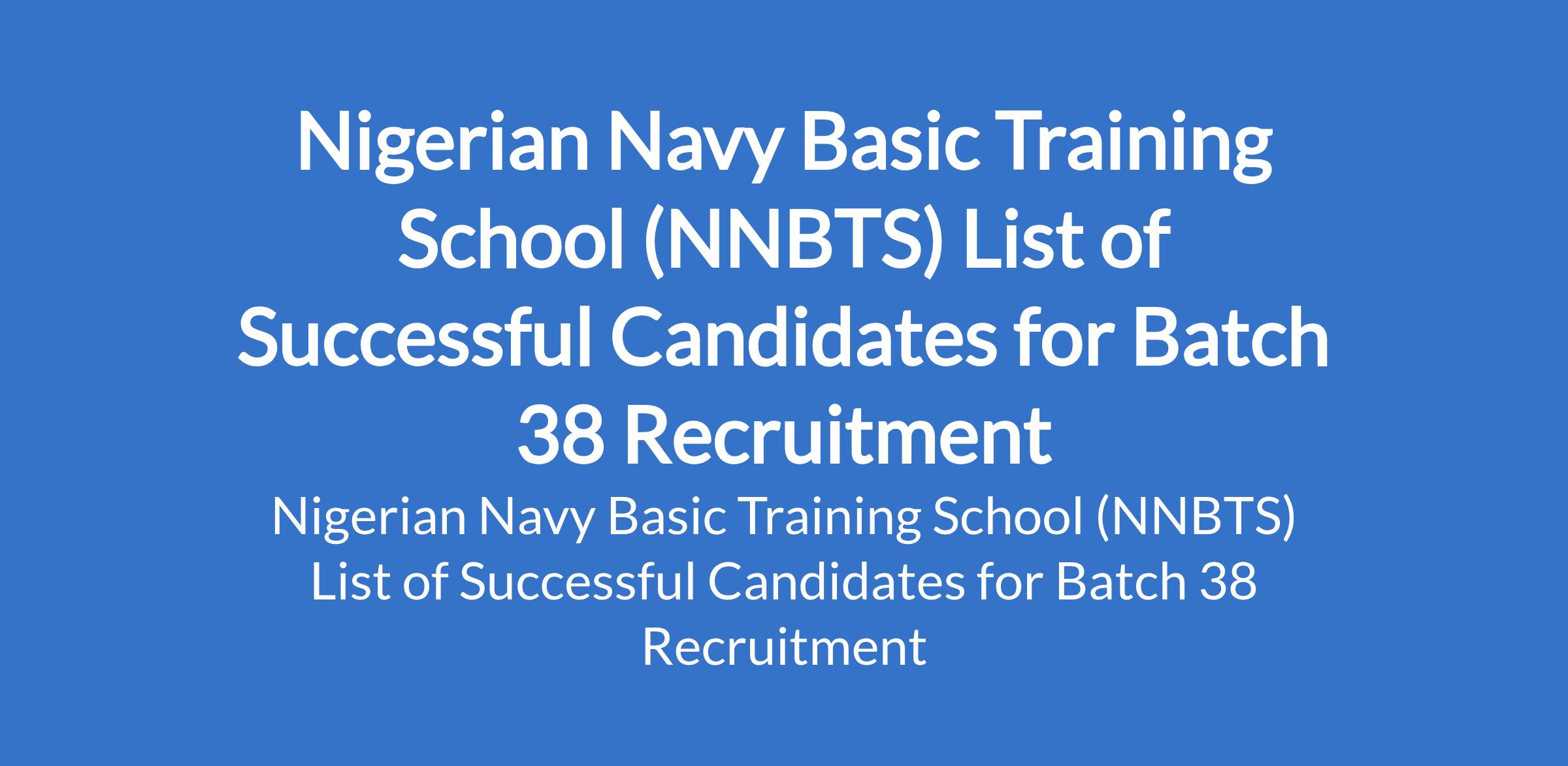 The Nigerian Navy wishes to inform the general public that the candidates whose names appear on the list were successful at the Nigerian Navy Basic Training School (NNBTS) Batch 38 Recruitment Interview. The successful candidates are to report for training at the Nigerian Navy Basic Training School Onne, Rivers State, on Saturday 11th April 2026.