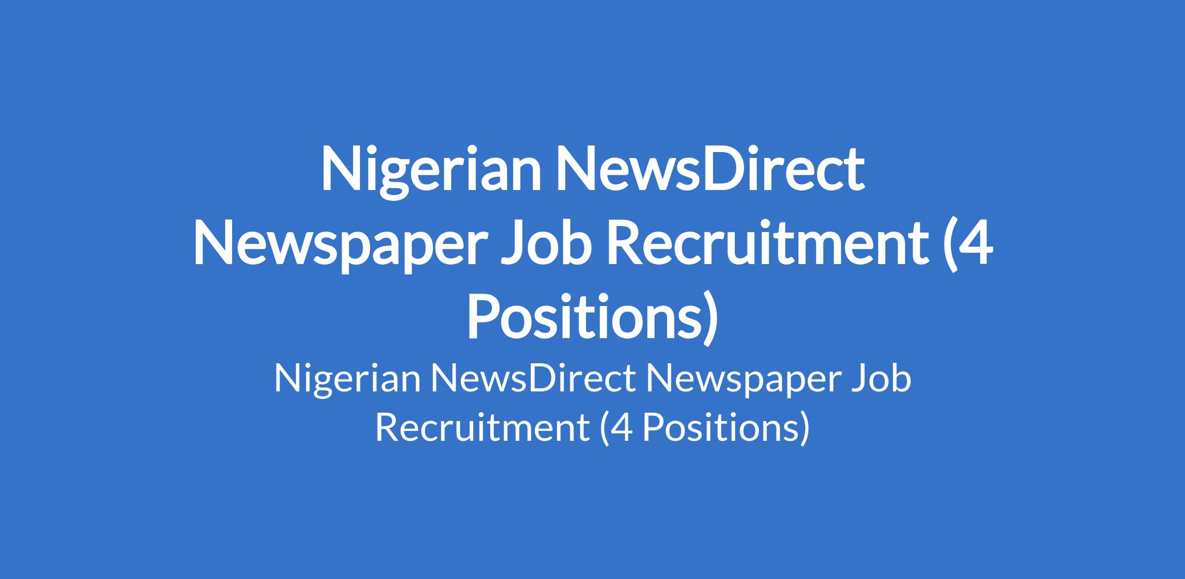 Nigerian NewsDirect Newspaper Job Recruitment (4 Positions)