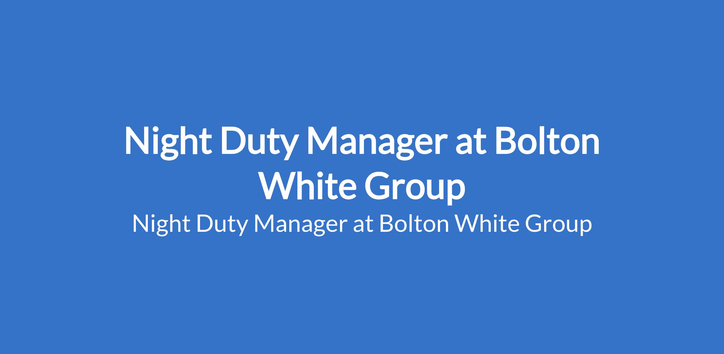 Bolton White Group is recruiting to fill the position of: Night Duty Manager. The position is located in Abuja (FCT). Interested candidates should possess a Degree or Diploma in Hospitality Management or a related field with a minimum of 5 years of supervisory experience in a Front Office or Night Operations role within a luxury (4/5 star) environment.