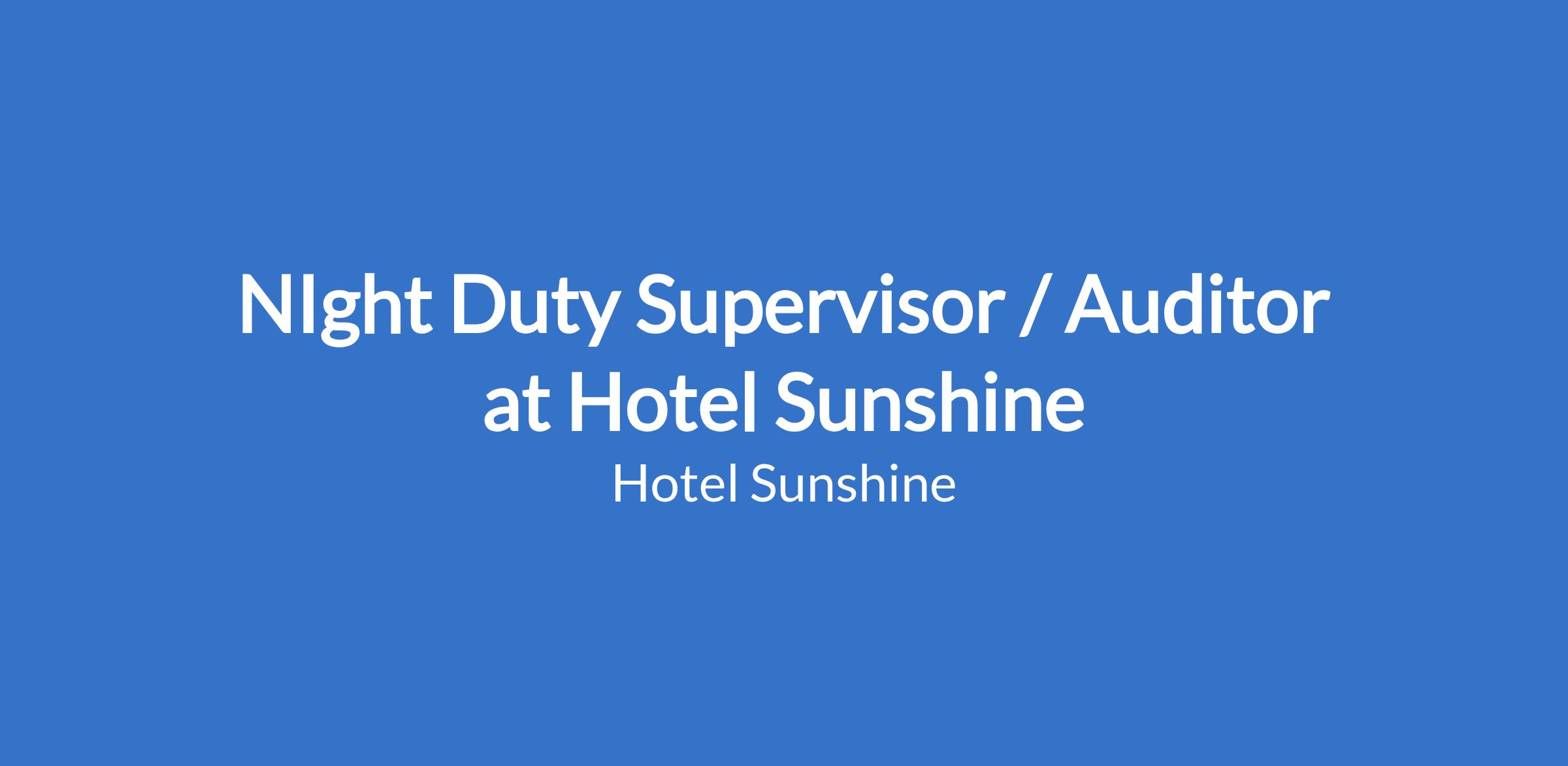 The Night Duty Auditor/Supervisor is responsible for managing hotel operations during the night shift, ensuring accurate financial reporting, maintaining guest satisfaction, and supervising front office activities.