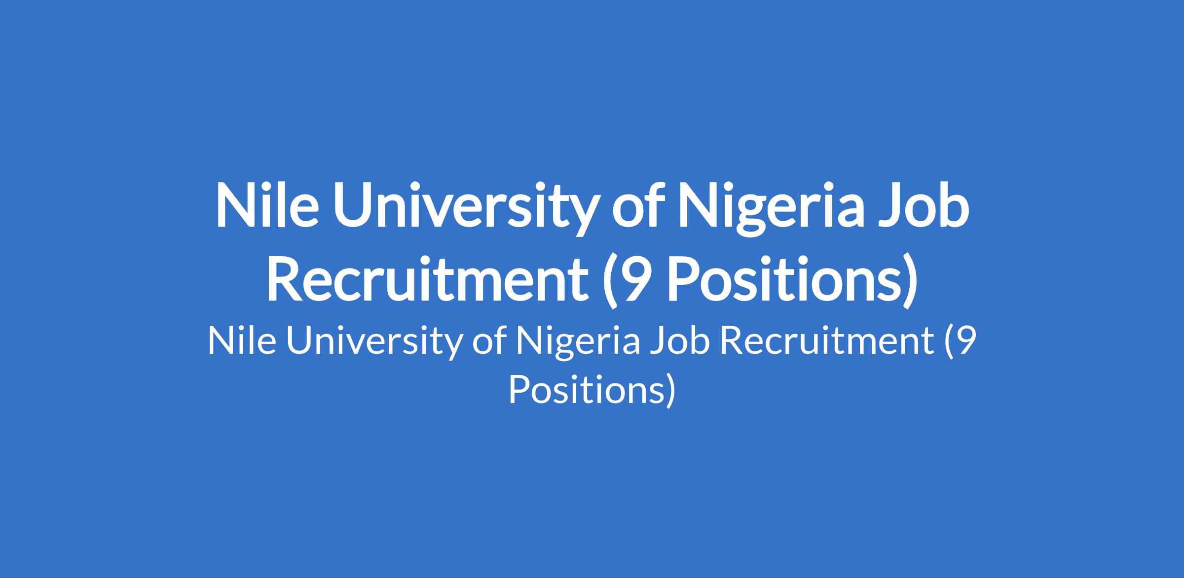 Nile University of Nigeria is recruiting suitably qualified candidates to fill the following positions in Abuja (FCT): Chemistry Instructor, Business Studies Instructor, Government Instructor, Senior Manager, Communications, Associate, Internal Audit, Mathematics Instructor, Physics Instructor, Biology Instructor.