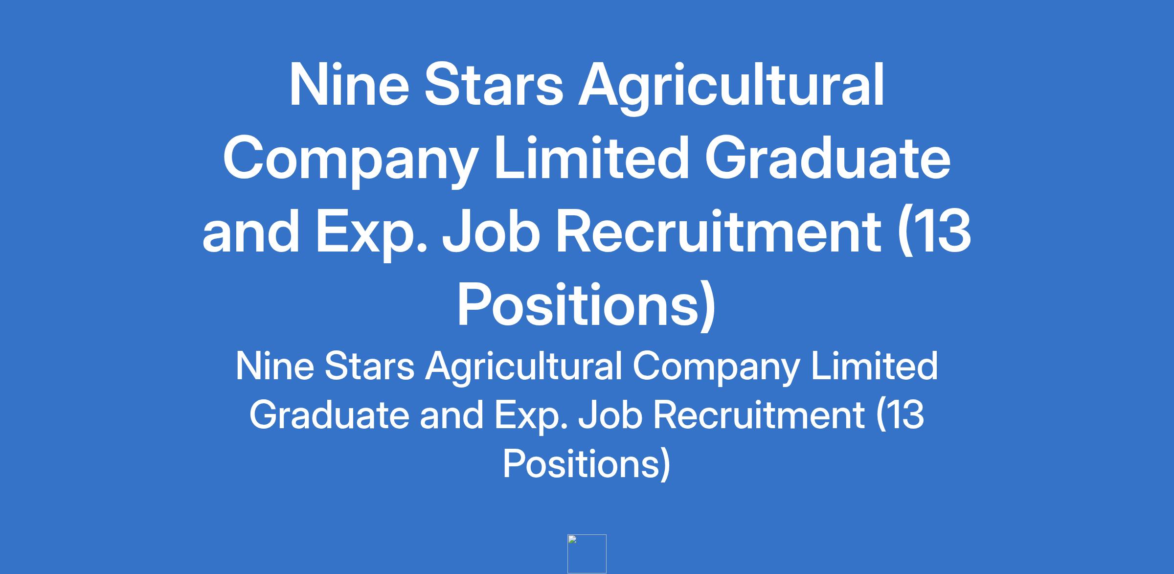 Nine Stars Agricultural Company Limited is recruiting suitably qualified candidates to fill the following graduate trainee and experienced positions in Ogun State: Marketing Manager / Business Development Executive; Road Engineer; Legal Officer (Real Estate); Building Engineer; Public Relations Officer, Electrical Designer; Marketing Manager / Business Development Executive; Graduate Trainee Programme; Chinese Translator; Legal Officer; Architect / Structural Designer / Electrical Designer / Mechanical Designer; Marketer / Business Development Executive, and Marketing Manager/ Business Development Executive.