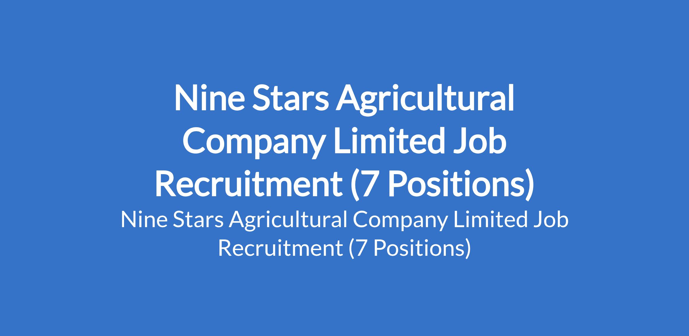 Nine Stars Agricultural Company Limited is recruiting suitably qualified candidates to fill the following positions in Ogun State: Electrical Engineer, Senior Legal Counsel, Marketing Manager (Real Estate & Land Acquisition), Senior Land Surveyor, Marketing Manager, Land Acquisition Manager, and Executive Assistant / Assistant to General Manager.