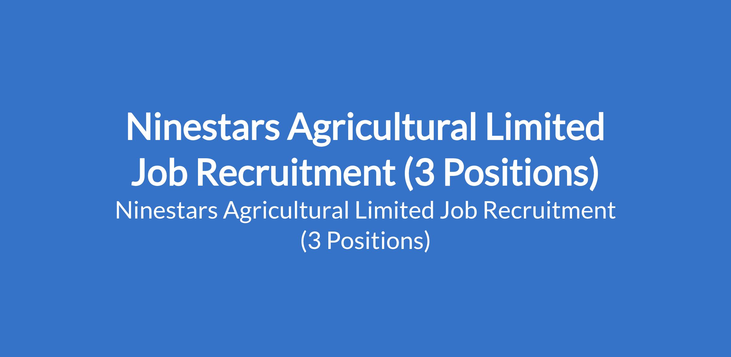 Ninestars Agricultural Limited Job Recruitment (3 Positions)