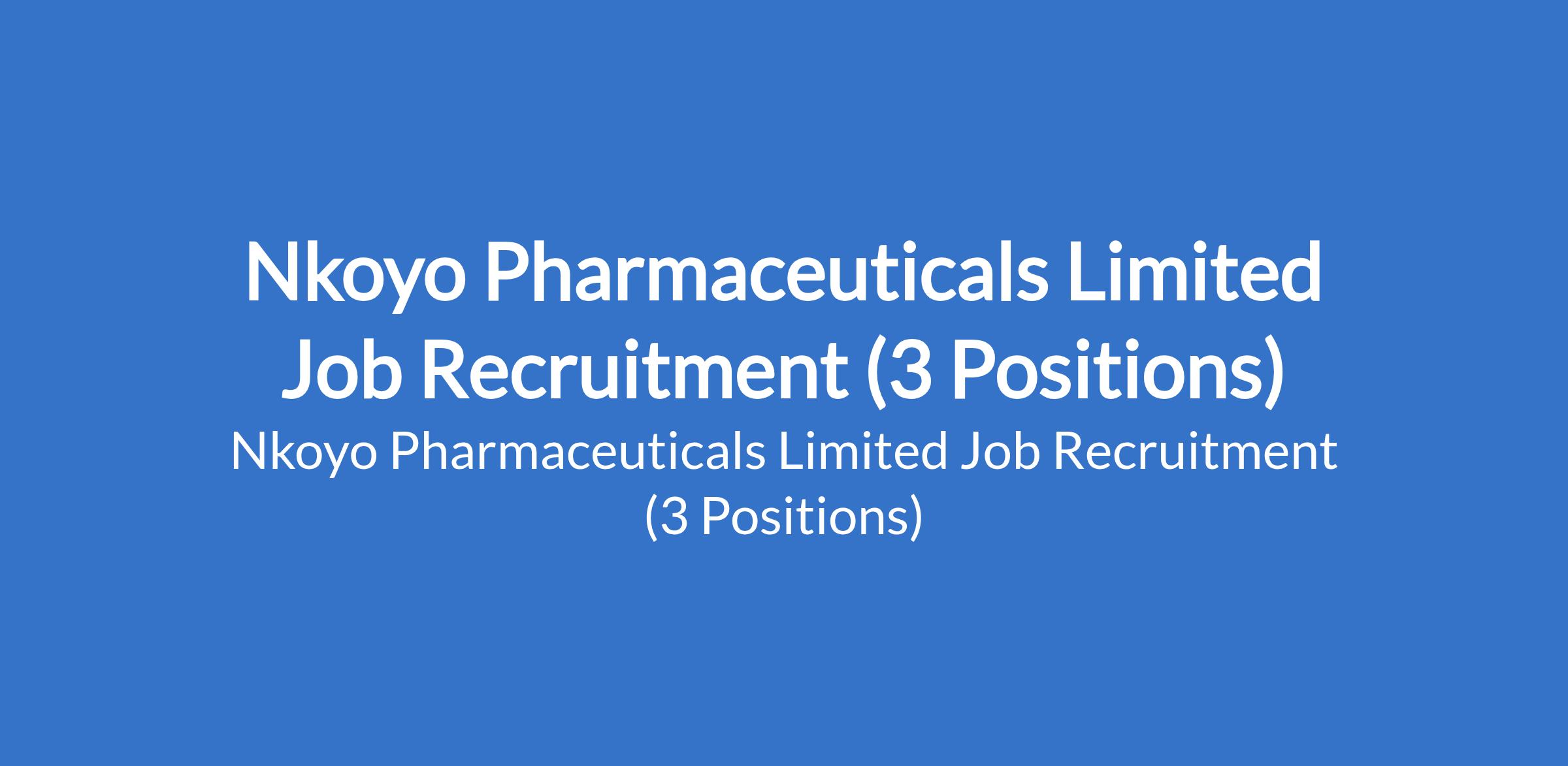 Nkoyo Pharmaceuticals Limited Job Recruitment (3 Positions)
