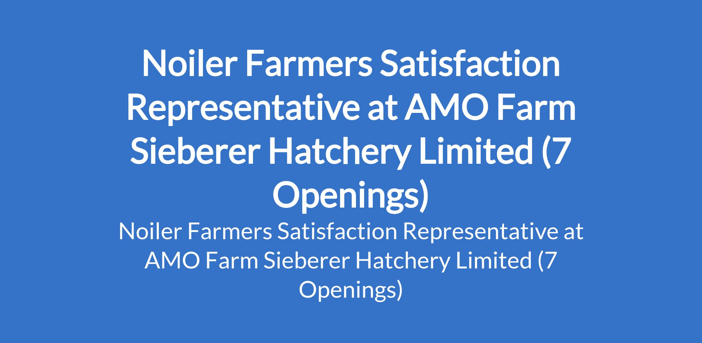 AMO Farm Sieberer Hatchery Limited is recruiting to fill the position of: Noiler Farmers Satisfaction Representative. The position is located in Abia, Akwa Ibom, Imo, Kogi, Kwara, Niger, & Rivers States. Interested candidates should possess a minimum of OND / HND / B.Sc Degree in Agriculture, Animal Science, or a related field; prior experience in poultry farming, agriculture, or rural development is preferred.